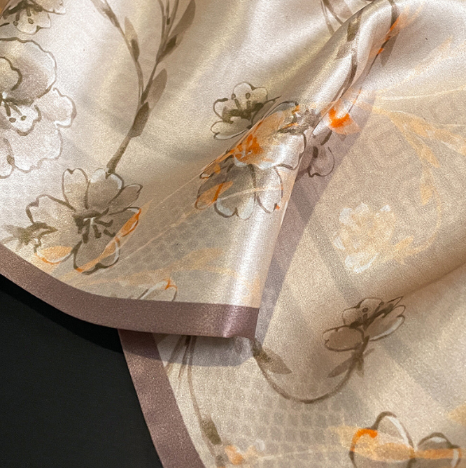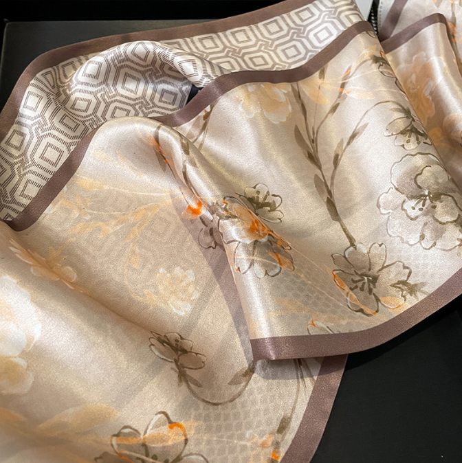 100% Pure Mulberry Silk Scarf 150x15cm Double-Sided Print Long Scarf for Women Elegant and Luxurious Fashion Accessory