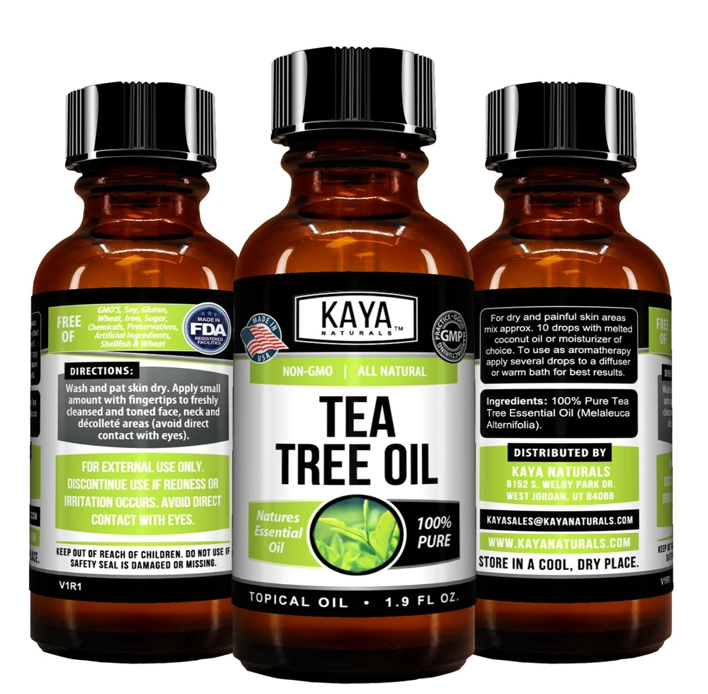 Type: Essential Oil Number in Pack: 1 Scent: Tea Tree Number of Settings: 1 Features: Alcohol Free, All Natural Ingredients, Cruelty-Free/No Animal Testing, Fair Trade Brand: Kaya Naturals UPC: 723592442729 Item Weight: 2 oz Color: Clear For: Aromatherapy Container Type: Melaleuca, Dropper Bottle Labels & Certifications: Organic MPN: KNTTO60 Country/Region of Manufacture: United States gtin13: 723592442729 Material: Tea Tree