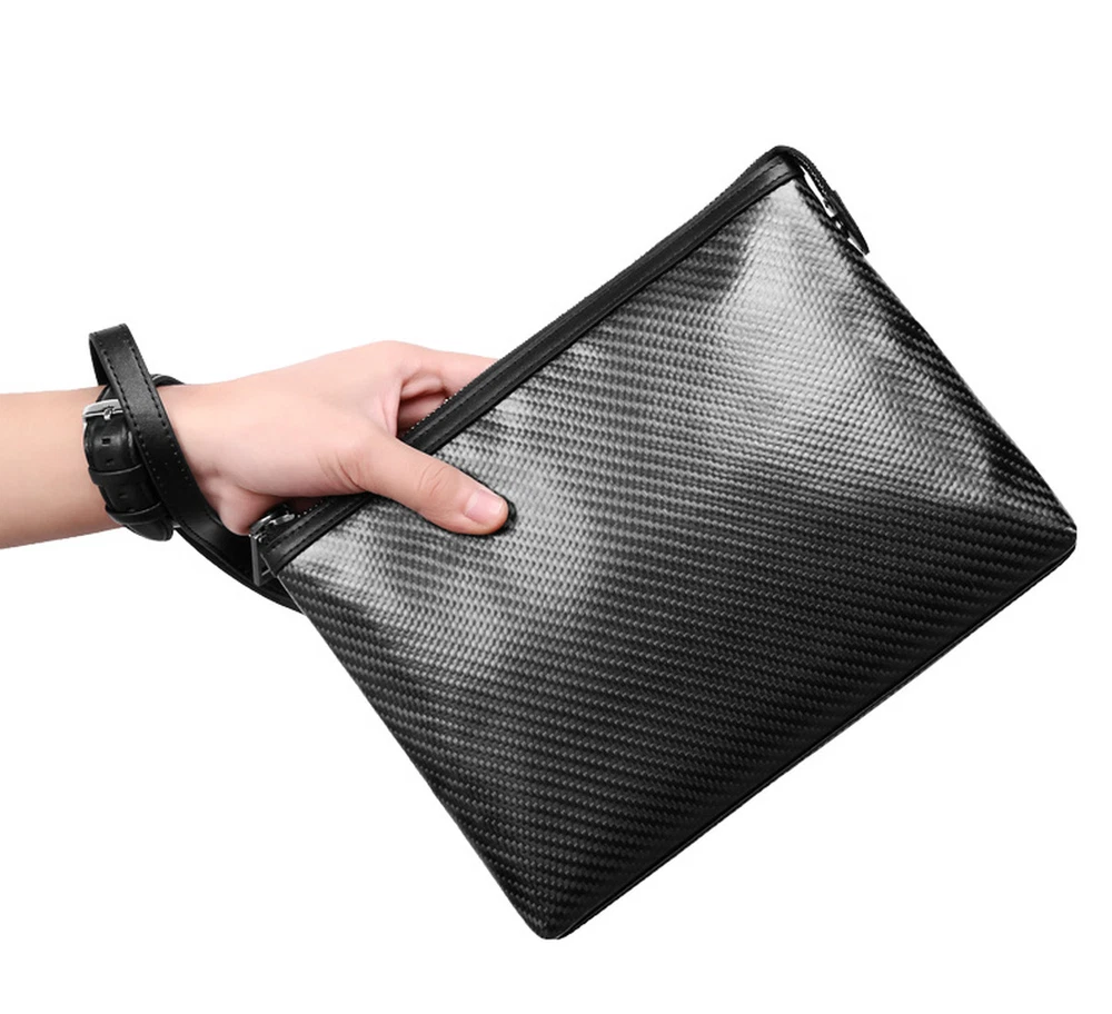 Feature 100% BRAND NEW Carbon Fibar Bag Made of carbon fiber and genuine leather materials. Style: Clutch Color: Black Size: 26.5cm (Length) x 18cm (Width) x 4cm (Thickness) Inner cowhide, soft and delicate texture After getting it,you will find that it is so worthy 100% high quality guarantee. Would be a very useful stuff in your pocket. Brand-new item as picture and in good condition. It is a good gift for your lover, family, friend and coworkers. PU Leather Bag Unique design: layered and reasonably placed multiple items, easy to carry all everyday items, smartphones, ID cards, credit cards, cash, keys, headsets, driver's licenses, mini power supplies, etc. Convenient wrist strap: There is a wrist strap on the back of the handbag, so you can slide your hand at any time to better grasp the handbag. Makes you feel safer and more comfortable. Material: The men's clutch is made of high quality PU leather. The quality of the leather is very good and it is gorgeous. Fashion and business: The clutch is ideal for all occasions, business and leisure. No matter how the fashion style changes, our quality and craftsmanship will always pursue fashion. The perfect gift: The men's handbag is the perfect gift for friends, fathers and brothers. It also applies to birthdays, Christmas, anniversaries, Father's Day, Valentine's Day and other special occas Size: 21*11*4 cm Package included: 1 Bag