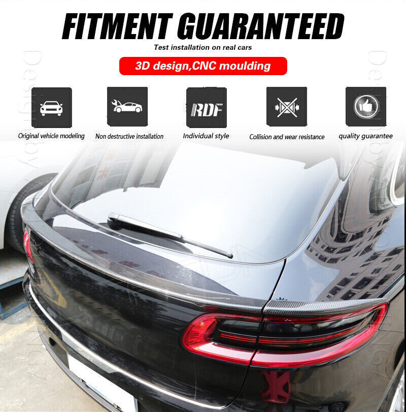 2008-2016 For AUDI S5 B8/B8.5 Coupe Real Carbon Fiber Rear Trunk Spoiler Wing 139.64 USD 146.99 USD 15.0 USD 5% off Toyota FT86 GT86 REAL CARBON Rear Trunk Spoiler Wing For Subaru BRZ Scion FRS 216.17 USD 227.55 USD Free shipping 5% off Real Carbon Fiber 1PCS Fits BMW F80 M3 F82 F83 M4 Interior Seat Back Trim Cover 134.89 USD 141.99 USD 5.0 USD 5% off Fit for Car 2 in 1 Android Auto Wireless Adapter & Wireless CarPlay Adapter Plug 19.88 USD 5.0 USD Alfa Romeo Giulia Sport Sedan for 2016-2022 Real Carbon Front Bumper Lip Spoiler 336.29 USD 353.99 USD Free shipping 5% off BMW G80 M3 G82 G83 M4 CARBON FIBER Front Air Inlet Duct Vent Replace For 2021Up 207.73 USD 218.66 USD 10.99 USD 5% off 1998-2006 100% REAL CARBON For BMW E46 M3 Couple Rear Trunk Spoiler Bigger Wing 186.83 USD 196.66 USD 2.0 USD 5% off For BMW 5 Series F10 M5 Base 12-17 REAL CARBON Rear Bumper Diffuser Lip Bodykit 370.49 USD 389.99 USD Free shipping 5% off REAL Carbon Fiber Rear Trunk Lip Spoiler Wing For 2020-2023 Tesla Model Y 75.99 USD 79.99 USD 150.0 USD 5% off 100% Real Carbon Fiber Front Bumper Lip Splitter For Mercedes-Benz AMG W205 C63 484.49 USD 509.99 USD 77.0 USD 5% off REAL CARBON For VW Volkswagen FOR Golf 5 R32 MK5 Rear diffuser Bumper Lip 05-09 274.54 USD 288.99 USD Free shipping 5% off 100%Real Carbon Front Bumper Fins Canard Vent Mercedes Benz W218 CLS63 AMG 15-17 177.12 USD 186.44 USD 27.0 USD 5% off Features 1.Fitment: for Porsche Macan 4 Door 2014 2015 2016 2017 2. Functions: Create a new iconic look, maintain vehicle body's stability. 3. Installation:No Drilling And Cutting Required, Direct Stick-On Application,easy to attach it to car and won't peel off, and has no damage to your car 4. Material: REAL Carbon fiber 5. Surface finish: 3*3 Twill Weave Carbon Fiber material with high Quality UV-Protected Clear Coating to prevent from yellowing and hold its high glossy finish 6. Processing:CNC molding, test installation on real cars, fitment guaranteed. 7.Packing:Multiple layers protected export carton, shockproof Features 1.Fitment: for Porsche Macan 4 Door 2014 2015 2016 2017 2. Functions: Create a new iconic look, maintain vehicle body's stability. 3. Installation:No Drilling And Cutting Required, Direct Stick-On Application,easy to attach it to car and won't peel off, and has no damage to your car 4. Material: REAL Carbon fiber 5. Surface finish: 3*3 Twill Weave Carbon Fiber material with high Quality UV-Protected Clear Coating to prevent from yellowing and hold its high glossy finish 6. Processing:CNC molding, test installation on real cars, fitment guaranteed. 7.Packing:Multiple layers protected export carton, shockproof Specification: Material:Carbon Fiber Color: Carbon Fiber Black Surface Finish:Carbon Fiber Process: Vacuum molding Pattern: 3X3 twill weave Installation : with glue tape Model: For Macan 4-Door Years: 2014 2015 2016 Position: Rear Hatchback Net weight: 1.11kg Packing size: 131.5*28*12.6 Package : Foam box with bubble wrapped inside Package content 3PCS /Set Rear roof spoiler, self-adhesive glue tape Installation Free adhesive tape and installation instruction are included 1.check the item and accessories included in the package. 2.use alcohol to clean the place where to put the spoiler on. 3.use adhesion promotor on the path ready for glue tape. 4.gently remove the glue tape and carefully put the spoiler on it. About Shipping The shipping fee is only for the mainland of each country, it does not include the overseas territories, such as Virgin Islands (U.S.) , Puerto Rico, French Reunion Island, etc. But on ebay, when buyers from Puerto Rico, the shipping fee is equal to United States, it is NOT correct, please contact us for correct shipping fee, or we will cancel the order. Sorry for the inconvenience, and thanks for your cooperation. 1. We can ship the item to worldwide, Please contact us if we have not specified the shipping fee to your country. 2. Package will be shipped from China, usually it will be delivered in 3-15 business days to most countries. 3. If you want to upgrade the shipping, please contact us before making payment, we will revise the shipping fee. About us Our company offers various kinds of high quality aftermarket auto parts including exterior parts and interior parts, and sold to more than 60 countries, including North America, Europe, Australia, southeast Asia, Middle East, South Africa, etc We have established r&d centers and production bases in Shenzhen, Dongguan and Jingmen, Also have first-class production equipment and have improved the traditional manual production process by using our operations. And we will always pursue technological innovation, strict quality control and considerate service. We are offering more of material finishing, please refer to the listing title for the correct one: 1.Carbon Fiber, surface glossy finished, 3K twill weave real carbon fiber material. 2.FRP Fiber Glass, Matt Black or Gloss black or grey unpainted semifinished, MUST primed & painted before fitted 3.Matte Carbon Fiber, it is matte finished. 4.ABS, it is plastic and can be installed directly. About Payment and tax 1. We ship to your eBay address.Please make sure your eBay address is correct before you pay. 2. For fastest processing and delivery, we advise you to pay via PayPal. 3.Your must complete the payment within 8 days or Ebay will automatically open unpaid item case For US Buyer: The invoice value of each item is less than 800USD ,so you no need to pay any tariff . NON-US Buyer Note: Most countries are tax free based on our invoices, if tax is required, which will be buyer's responsibility. Return policy We offer refund or exchange within 30 days after buyer received damaged, incorrect or defective item. Please always contact us to resolve any problems, we will do our best to satisfy you. Thanks very much. Contact us 1. We are trying our best to explain all details of the products here! If you have any question, please feel free to contact us by Ebay message,