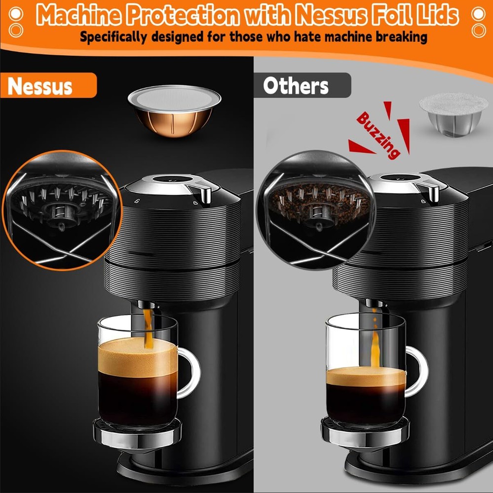 Aluminum Foil Lids for Nespresso Vertuo Reusable Pods, 100 PCS Foil Seal Cover for Refill Espresso Coffee Capsule, Compatible with Nespresso Refillable Capsule PERFECT SIZE & ADHESION: Say goodbye to foil waste, weak coffee, and machine damage caused by ill-fitting seals. foil lids easily position reusable vertuo pods without covering the barcode. Plus, they feature food-grade adhesion that keeps your pods airtight and well-sealed, so you can prefill them and enjoy fresh coffee anytime. SAVE YOUR MONEY: Specially designed for Nespresso pods vertuo, 100pcs foil seal lids help you easily refill and reuse your vertuo pods, saving money and reducing waste, providing convenience and high efficiency for your coffee life. EASY TO REFILL: Refilling your vertuo reusable pods with the refillable pods kit is simple and hassle-free. Just put the empty capsule into the holder, add your favorite coffee powder, and use the foils to align with the raised edge of the holder. Then, press the top cover to get a new capsule. UNLOCK ENDLESS POSSIBILITIES: Unlike being limited to a small variety of coffee blends, Aluminum foil covers give you the ability to select the coffee of your choice. Whether it's your morning fuel or a relaxing moment shared with friends, Foil Lids for Nesprsesso reusable pods cater to your pursuit of coffee excellence, which make excellent gifts for coffee lovers. 100% SATISFACTION: Whether you seek the perfect flavor or long-term protection for Nespresso vertuo machine, aluminum foil seals will be your ideal choice. By choosing our refillable pods seals Lid, you can achieve a win-win situation in terms of saving money and being environmentally friendly. Shipping We offer FREE shipping on all orders! We ship within Three business days of payment, usually sooner. We use a selection of shipping services such as UPS, FedEx, USPS etc. We only ship to the lower 48 states, no APO/FPO addresses or PO Boxes allowed. Local pickups and combined shipping options are not provided at this time. Return You can return a product for up to 30 days from the date you purchased it. Any product you return must be in the same condition you received it and in the original packaging. Please keep the receipt. Payment We accept payment by any of the following methods: PayPal Please pay as soon as possible after winning an auction, as that will allow us to post your item to you sooner! Feedback Customer satisfaction is very important to us. If you have any problem with your order, please contact us and we will do our best to make you satisfied. Contact Us If you have any queries, please contact us via ebay. We usually respond within 24 hours on weekdays. Please visit our eBay store to check out other items for sale! Thank you for shopping at our store.