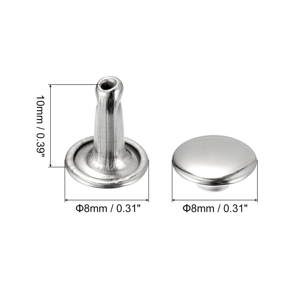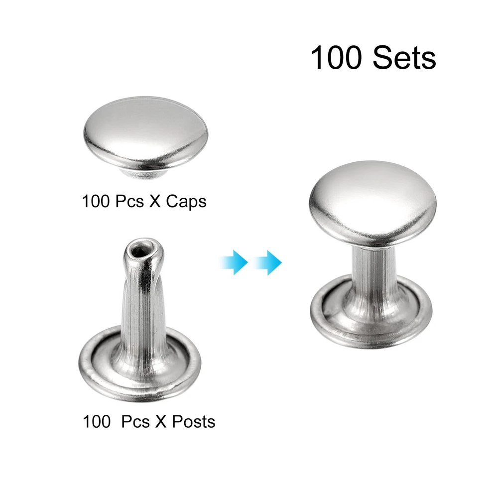 Document Description:1. Material: The double cap rivets are made of carbon steel material, durable, electroplating surface treatment, rust prevention, oxidation resistance, bright luster, and durability.2. Advantages: Round design, rivet outside corner round and smooth, beautiful and not easy to fall off, lightweight, small volume, can be used for a long time.3. Easy installation: Punch a hole in the items requiring leather rivet with a punch hole tool, then place the rivet foot up on the base, push it into the hole, and place the rivet cap, the mounting punch is vertically aligned with the rivet cap and can be fixed by beating the mounting punch with a hammer. Better if you have professional leather binding tools.4. Application: Leather rivets are usually used to repair and DIY decorate your items such as belts, bags, totes, handbags, purses, crafts, etc. They can also be used to decorate clothing such as shoes, jackets, jeans, etc. A variety of materials can be installed, such as leather, paper, fabric, etc.Specifications:Material: Carbon SteelColor: Silver ToneFinish: ElectroplatedRivet Diameter: 8mm / 0.31"Base Height: 10mm / 0.39"Suitable for (Max.): 6.5mm / 0.26" ThickPackage Included:100 Sets x Double Cap Rivets(100pcs Caps, 100pcs Posts) 20 Sets Leather Rivets Silver Tone 8mm Brass Rivet Studs with Setting Tools USD 13.73 Metal Nails Tacks 1/2"(13mm) for Shoes Boots Leather Heels Soles Black 650pcs USD 12.78 50 Sets Leather Rivets Bronze Tone 6mm Brass Rivet Studs with Setting Tools USD 15.09 50 Sets Leather Rivets Silver Tone 8mm Brass Rivet Studs with Setting Tools USD 16.38 180Sets Leather Rivets Kit 3 Colors 2 Sizes with 3PCS Setting Tools for Leather USD 16.83 20 Sets Leather Rivets Gold Tone 8mm Brass Rivet Studs with Setting Tools USD 13.73 100 Sets Leather Rivets, 8mm Double Cap Rivets 10mm Height Studs, Silver Tone Description: 1. Material: The double cap rivets are made of carbon steel material, durable, electroplating surface treatment, rust prevention, oxidation resistance, bright luster, and durability. 2. Advantages: Round design, rivet outside corner round and smooth, beautiful and not easy to fall off, lightweight, small volume, can be used for a long time. 3. Easy installation: Punch a hole in the items requiring leather rivet with a punch hole tool, then place the rivet foot up on the base, push it into the hole, and place the rivet cap, the mounting punch is vertically aligned with the rivet cap and can be fixed by beating the mounting punch with a hammer. Better if you have professional leather binding tools. 4. Application: Leather rivets are usually used to repair and DIY decorate your items such as belts, bags, totes, handbags, purses, crafts, etc. They can also be used to decorate clothing such as shoes, jackets, jeans, etc. A variety of materials can be installed, such as leather, paper, fabric, etc. Specifications: Material: Carbon Steel Color: Silver Tone Finish: Electroplated Rivet Diameter: 8mm / 0.31" Base Height: 10mm / 0.39" Suitable for (Max.): 6.5mm / 0.26" Thick Package Included: 100 Sets x Double Cap Rivets(100pcs Caps, 100pcs Posts) Hot Item 180Sets Leather Rivets Kit 3 Colors 2 Sizes with 3PCS Setting Tools for Leather USD 16.83 50 Sets Leather Rivets Bronze Tone 6mm Brass Rivet Studs with Setting Tools USD 15.09 20 Sets Leather Rivets Gold Tone 8mm Brass Rivet Studs with Setting Tools USD 13.73 50 Sets Leather Rivets Silver Tone 8mm Brass Rivet Studs with Setting Tools USD 16.38 20 Sets Leather Rivets Gold Tone 10mm Double Cap Brass Rivet Leather Studs USD 9.65 Payment We accept eBay payment. Please do not email us to ask for other payment option. We appreciate prompt payment and look forward to your business in the future. Unpaid item will be filed without receiving payment in 7 days from listing ended. Shipping Usually we ship your order out within 24 hours in business day. For shipping and handling charges (S&H) for specific item, please refer to the item listing page for more details. Please make sure your shipping address is correct. We are not responsible for any loss in transit if a wrong address is provided. Return Policy Returns for exchange are permitted and must be initiated by the buyer within 30 days upon receipt. If you would like to return your product(s) for repair / replacement / refund, please kindly contact our customer service representatives via email for an authorized RMA number. Your returned product(s) will not be processed without a completed RMA. About Us We are continually expanding our product selection to better serve your need. We look forward to providing the best sevice to you - our dear customers, so take a look around our store and find the product that you want. You can put your trust in us! If you need any help or have any suggestions, please don't hesititate to contact us anytime , we will reply you within 24 hours and try the best to help you. Description Policy 100 Sets Leather Rivets, 8mm Double Cap Rivets 10mm Height Studs, Silver Tone Description: 1. Material: The double cap rivets are made of carbon steel material, durable, electroplating surface treatment, rust prevention, oxidation resistance, bright luster, and durability. 2. Advantages: Round design, rivet outside corner round and smooth, beautiful and not easy to fall off, lightweight, small volume, can be used for a long time. 3. Easy installation: Punch a hole in the items requiring leather rivet with a punch hole tool, then place the rivet foot up on the base, push it into the hole, and place the rivet cap, the mounting punch is vertically aligned with the rivet cap and can be fixed by beating the mounting punch with a hammer. Better if you have professional leather binding tools. 4. Application: Leather rivets are usually used to repair and DIY decorate your items such as belts, bags, totes, handbags, purses, crafts, etc. They can also be used to decorate clothing such as shoes, jackets, jeans, etc. A variety of materials can be installed, 