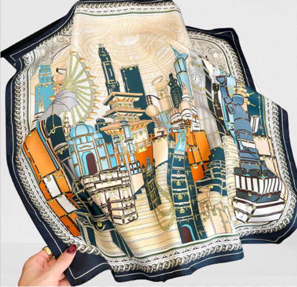 UPC: Does not apply Style: Scarf Fabric Type: Satin Department: Women gtin13: Does not apply Material: 100% Silk MPN: Does Not Apply Pattern: Geometric Shape: Square Type: Bandana/Square Scarf Season: Fall, Spring, Summer, Winter Brand: Unbranded Color: Blue