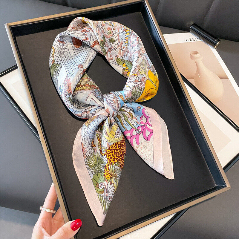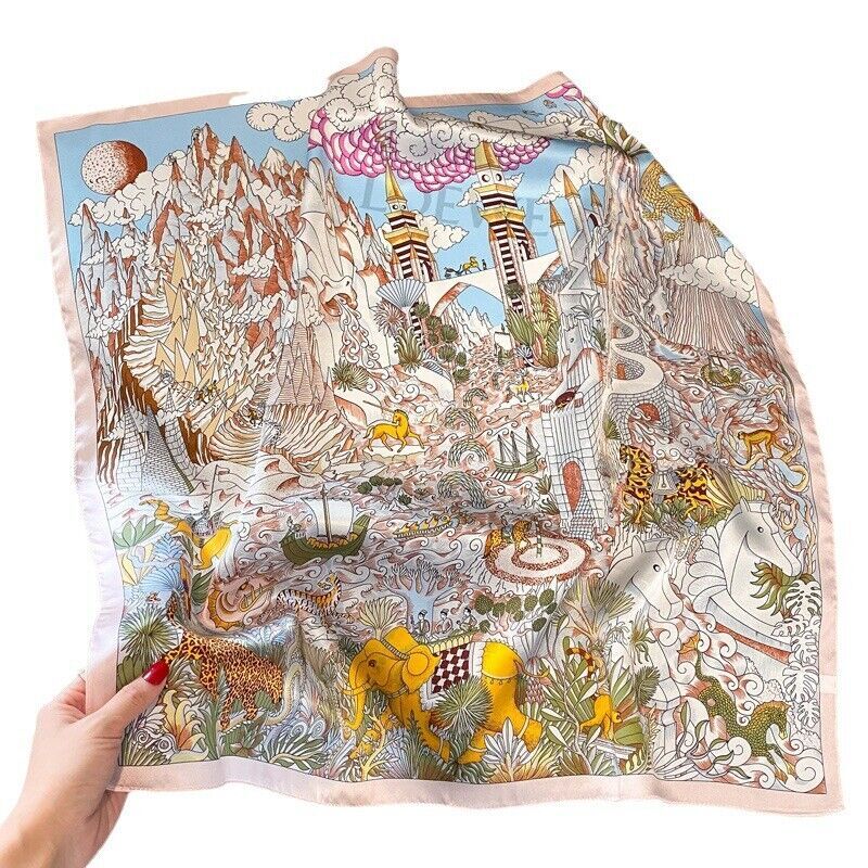 100% Silk Mulberry 26-Inch Square Scarf Jungle Animal Print Womens Wrap Neckerchief