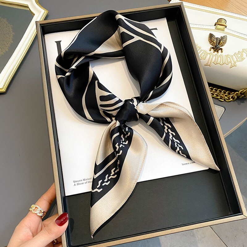 $ 2.52100% Silk Vintage Scarf for Women Black Brown Square Bandana Wrap 68x68cm