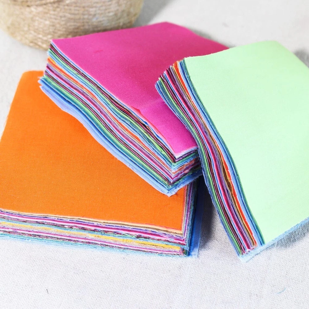 -100% brand new and good quality -Quantity: 100 pieces/set This charm pack has 50 different prints and some duplicates. -Size : 4inch squares ( maybe 1-3 mm error dut to due to manual cutting) -Material: 100% cotton These fabrics are all 100% pure cotton and they are twill-woven.Its fabric structure is a twill weave with two threads going up and one thread going down, forming a 45° diagonal pattern on the left. It is not thick but very sturdy and durable, with excellent breathability and moisture absorption. It feels soft and not stiff when in contact with the skin. Suitable for : Crafting, Home Décor, Quilting, Sewing, doll ,handbag General, .......everything u want. Suit for sewing crafting, home decor, bag, quilting, table runner, pillow cover, sewing crafting decor, button covering,hair ties, hair clips,bear & toy making,badges,card making,blankets,Jam Jar covers and other things you want . We provide better service with cheap price.Don't hesitate to act. If you have any question ,please feel free to contact me.