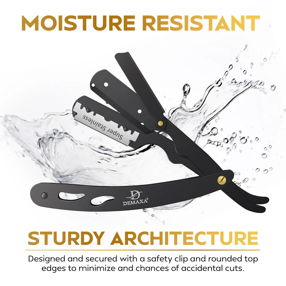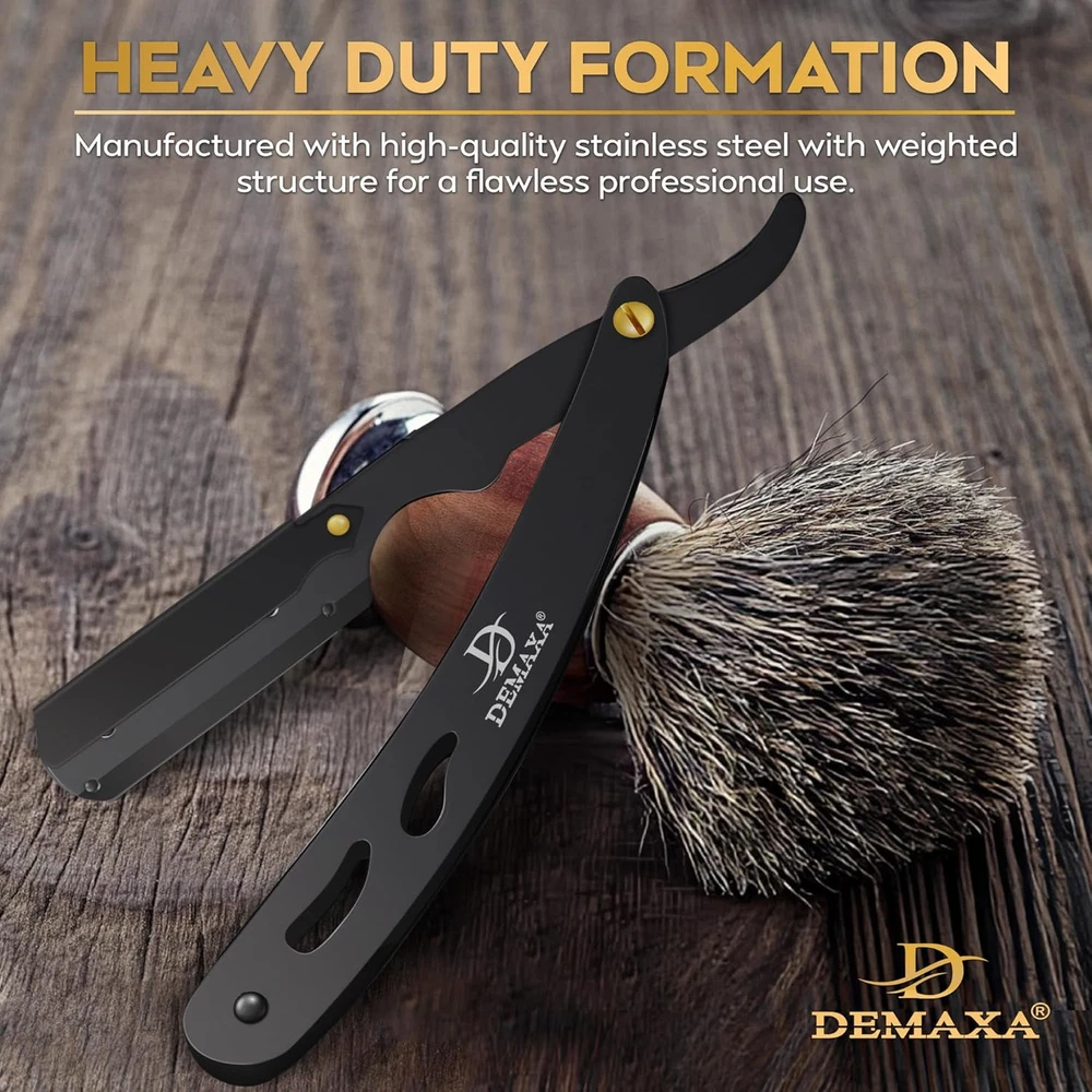 100 Straight Razor Blades with DEMAXA Shavette Adjustable Screw Description Features: Ultra-Sharp Precision: DEMAXA professional straight razor are Expertly crafted with an ultra-sharp, single edge barber blade design for precise line-ups and detailed edging. Include 100 Blades: With each purchase our barber straight razor, you'll receive 100 single edge razor blades, ensuring you have an ample supply for many multiple grooming sessions without the need for immediate replacement. Comfortable Shave: Our barber razors for men reducing fatigue during extended grooming sessions and premium straight razor blades provide a smooth, comfortable shave with minimal irritation and razor bumps. Versatile Tool: This Straight edge razor is ideal for maintaining clean lines, shaping beards and mustaches, and achieving a polished, groomed look. Compact and Portable: Lightweight and compact mens straight razor design makes it convenient for travel or on-the-go grooming. Product Details: Product Dimensions : 5.7 x 1 x 0.3 inches; 2 ounces Manufacturer : DEMAXA Country of Origin : USA Brand: DEMAXA Number of Blades: 1 Unit Count: 103 Count Special Feature: Precise Line-up, Professional Grade, Ultra Sharp Blade, Adjustable Skin Type: All Handling We will ship all orders within 3 business day of payment. Delivery We take pride in offering fast and reliable delivery for your orders! We are committed to getting your products to you as quickly as possible. Generally, we would like to inform you that all orders will be delivered to you within 1-3 business days after processing.However, in some cases, delivery times may vary depending on the buyer's location. Especially in remote or rural areas, the expected delivery time may be extended. In such situations, we do our best to ensure that your order reaches you as quickly as possible.If there are any delays, we will be happy to contact you to explain the situation. Our goal is to enhance your satisfaction with our fast delivery times. We work diligently to ensure that your order arrives safely.Trust us and enjoy our speedy delivery! Return Policy All items qualify for returns within 30 days of receipt. Buyer is responsible for return shipping on any item that is not damaged. Feedback We take our reputation seriously, we buy and sell online, so we understand the value of trust. If you are unsatisfied with your order, please contact us and we will work with you to resolve it to your satisfaction.