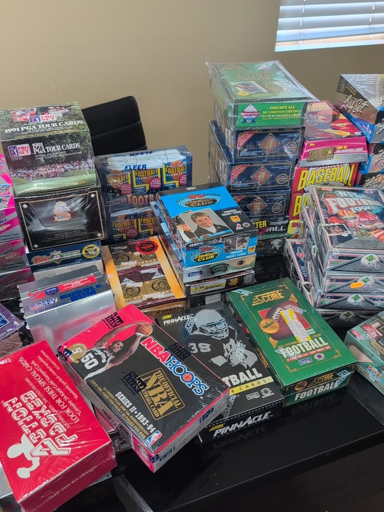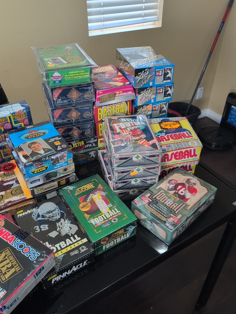 1 lot contains roughly 100 cards from unopened packs. Usually 1-2 packs from each of the major sports. All packs are from the late 80's to the early 2000s from all the major brands like Topps,Donruss, upperdeck, stadium club, Hoops, fleer, Bowman and many more. You will also receive a 10 card loose lot of HOFers as a bonus.