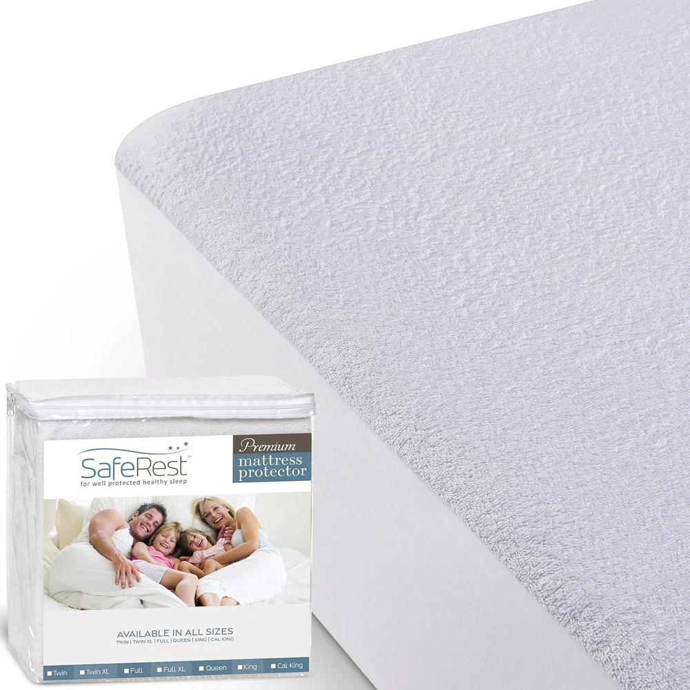 Store New Arrivals Add to Favorite View Feedback Contact 100% Waterproof California King Size Mattress Protector - Fitted with Stretchable Pockets - Machine Washable Cotton Mattress Cover for Bed - Bedding Airbnb Essentials for Hosts - Cal King Description Item model number LLTIMPCK02 Closure Type Fitted sheet style Special Feature Waterproof, Stain Protection, Noiseless, Washable, Breathable Color White Thread Count 230 Product Dimensions 77.95 x 77.95 x 1.97 inches Material Original (Cotton Terry) Material Type Original (Cotton Terry) Fabric Type Premium Cotton Terry Item Weight 1.92 pounds Size California King Product Care Instructions Machine Wash Age Range (Description) All Ages Is Discontinued By Manufacturer No Water Resistance Level Waterproof Country of Origin China KEEP YOUR MATTRESS DRY - Helps protect against fluids, urine, perspiration and anything else that might stain your mattress! QUIET & BREATHABLE - Quiet breathable california king mattress protector that will allow a full night sleep while protecting your mattress PROTECT YOUR MATTRESS - Perfectly fitted california king mattress cover that protects against unwanted creatures BEDDING ESSENTIALS - Airbnb Essentials for Hosts, Essential for first home and/or new apartment MACHINE WASHABLE - Machine washable on cold and tumble dry once cleaned SafeRest Premium Mattress Protectors Provide Undetectable Protection for You and Your FamilyProtects against perspiration, urine and fluidsSafeRest Premium Mattress Protectors offer protection against fluids, urine, perspiration and making them especially helpful for those with kids, pets or incontinence. SafeRest mattress protectors trap skin cells on the surface of the protector where they can be easily washed away during suggested quarterly launderings. This helps provide a cleaner environment for you and your family.Soft Cotton Terry Surface - Breathable, Cool and NoiselessTo keep our protectors cool and noiseless, the surface material is made with soft cotton terry back coated with a breathable and 100% waterproof membrane layer. Cotton terry naturally absorbs moisture and is completely noiseless.Fitted Sheet StyleTo ensure a great fit, an elastic band is used on the side skirt to automatically pull excess material under the mattress.Machine WashableMachine-wash with your sheets using normal household detergents that do not contain bleach. Tumble dry on low heat. Do not iron.SafeRest Invisa-ShieldOur mattress protectors will not change the feel of your mattress. This is great for those with any type of mattress including innerspring, latex or memory foam. All SafeRest Mattress Protectors contain no phthalates, vinyl or PVC's. ABOUT US We offer the best prices around on high quality products. Our E-store includes media such as books, movies, music and games while offering electronics, toys, sporting apparel, clothing, tools, general home, garden items and more. SHIPPING We are always working hard to ensure your package arrives as soon as possible. Please understand that some factors like weather, high postal traffic, and the performance of shipping companies are outside of our control. We offer free shipping to the lower 48 states and ship within 2 business days of payment, usually sooner. We do not accept P.O. Boxes. Please provide a physical address. For shipping outside of the continental USA, we only use eBay's Global Shipping Program.The item is shipped to KY and then sent to the rest of the world. International customers are responsible for all duties and taxes. Continue to check out in order to calculate costs for shipping the item to your country. Messages regarding eBay's Global Shipping Program MUST be directed at eBay EXCLUSIVELY. RETURNS We offer a 30-Day Return Policy on items which you are not completely satisfied with. You have the option for a full-refund or an exchange of the item. No returns are available on items shipped outside of the USA. PAYMENT We accept PayPal. CONTACT US This page content is yet to come Please ad us to your favorite seller and visit again later Thank You CUSTOMER SATISFACTION We try our very best to make sure every customer is completely satisfied. If there's a problem, message us! We're happy to help. WE ACCEPT Copyright © 2021 AutoDS. | All Rights Reserved
