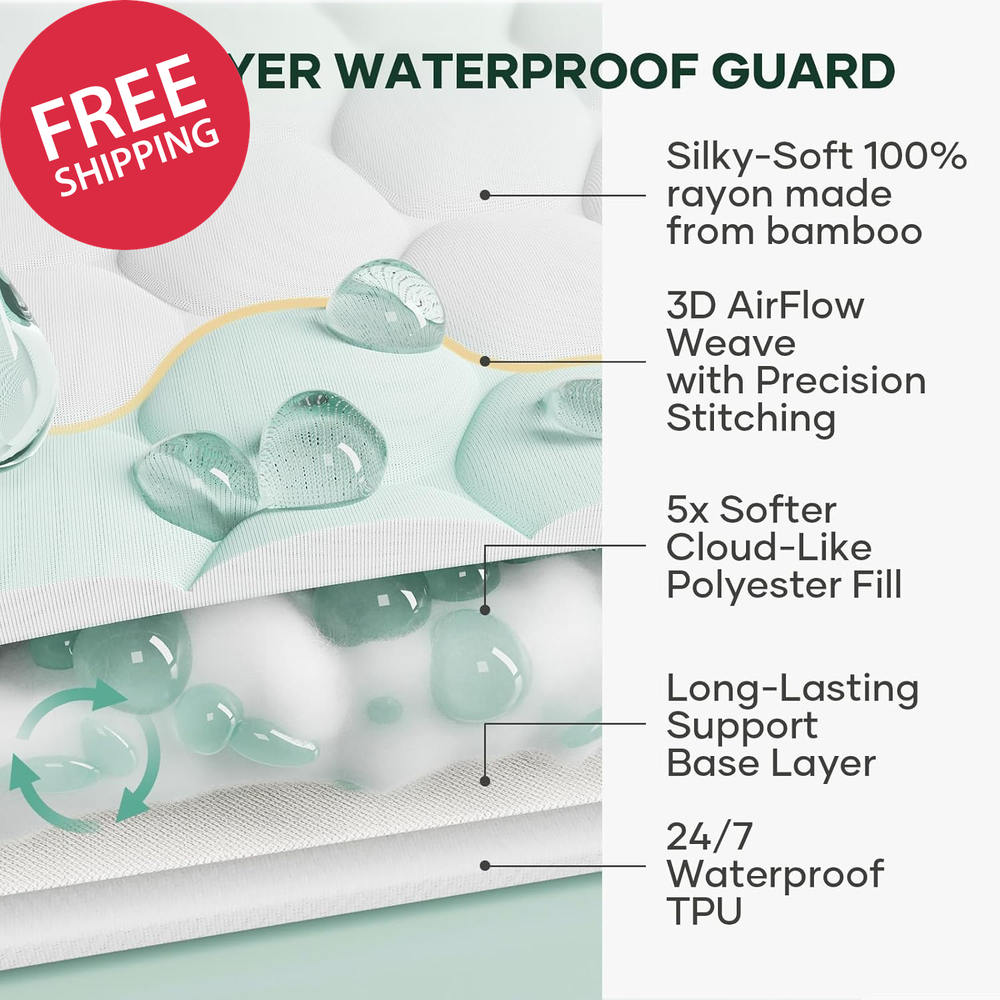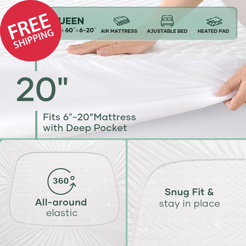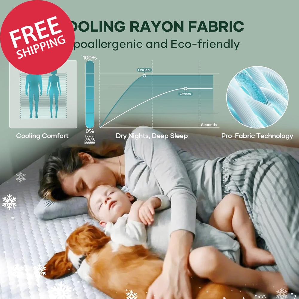 100% Waterproof Mattress Protector,Queen Size Mattress Soft Pad,Pet Hair & Bedwetting Resistant,Cooling Breathable Fitted Sheets,Washable Bed Cover,Non-Slip Deep Pocket,Noiseless for Bedroom Top Layer:100% Rayon (from Bamboo) Middle Layer:100% Polyester Back Layer:100% Polyester Backing:100% Tpu Laminate Skirt:100% Polyester 【Multi-Layer Waterproof Shield】: Soft top absorbs spills instantly, absorbent core blocks urine, sweat and dust, reinforced base locks liquids without seep-back. Handles toddler bedwetting, drink spills, and messy surprises. Long-Lasting protection keeps your mattress dry and fresh—no leaks, no regrets, just peace of mind for every sleep. 【Deep Pocket Design with 360° Elastic Edges】: Fits 6"-20" mattresses (Queen 80"x60") with elastic edges that hug tightly like a second skin, adapting to any mattress type. Unlike ordinary covers that wrinkle and rustle, our durable bands stay securely in place—blocking crinkling sounds while delivering silent, peaceful comfort throughout the night. 【Breathable & Cooling Comfort】: The premium-quality materials offer skin-friendly softness, gentle on sensitive skin. The 3D honeycomb weave whisks away sweat to keep you cool through hot nights. Cushioned support meets airflow grid—balancing comfort and breathability so every night feels renewing, every morning wakes you refreshed. 【Effortless Cleaning & Maintenance】: Machine washable and tumble dry on low—comes out soft, clean, and fully waterproof every time. Stretchy edges make it easy to install or remove. For added convenience, grab two! Swap instantly during accidents—no midnight panic, just fresh protection. 【Bedding Essentials】: It's a trusted ally for life's unpredictable moments—whether dealing with incontinence, potty-training, or nursing the sick and pets. Compact enough to toss in your suitcase, it's Airbnb hosts' and families' invisible shield—always ready to tackle stains. Product description The video showcases the product in use. The video guides you through product setup. The video compares multiple products. The video shows the product being unpacked. OhGeni Waterproof Mattress Protector Soft Merchant Video 1 Cooling & Breathable 2 Hypoallergenic & Comfort 1 Machine Washable 2 Fits 6"-20" Mattress 3 Suitable for Various Bed CHOOSE THE RIGHT ONE Add to Cart Add to Cart Add to Cart Add to Cart Add to Cart Add to Cart Add to Cart Customer Reviews 4.6 out of 5 stars 3,366 4.6 out of 5 stars 3,366 4.6 out of 5 stars 3,366 4.6 out of 5 stars 3,366 4.6 out of 5 stars 3,366 4.6 out of 5 stars 3,366 4.6 out of 5 stars 3,366 Price $32.99 $ 32 . 99 $25.99 $ 25 . 99 $23.99 $ 23 . 99 $33.99 $ 33 . 99 $31.99 $ 31 . 99 $31.99 $ 31 . 99 $23.99 $ 23 . 99 Find Your Size → Queen 80"x60" Queen 80"x60" Twin 75"x39" Full 75"x54" King 84"x72" Twin XL 80"x39" Twin 75"x39" Key Benefit Double the Defense Family's First Choice Extended Comfort Double the Defense Double the Defense Double the Defense Extended Comfort Deep Pocket Design Fits up to 20'' Fits up to 20'' Fits up to 20'' Fits up to 20'' Fits up to 20'' Fits up to 20'' Fits up to 20'' Machine washable? ✔ ✔ ✔ ✔ ✔ ✔ ✔ All Sizes Include Lifetime Leakproof Lifetime Leakproof Lifetime Leakproof Lifetime Leakproof Lifetime Leakproof Lifetime Leakproof Lifetime Leakproof Item model number MPW3V101 Closure Type Pull On Number of Items 1 Color 1- White Product Dimensions 80 x 60 x 16.14 inches Material Bamboo Viscose, Polyester Water Resistance Level Waterproof Fabric Type function(f) {var _np=(window.P._namespace("DetailPageProductOverviewTemplatesJava"));if(_np.guardFatal){_np.guardFatal(f)(_np);}else{f(_np);}}(function(P) { P.when('A').execute(function(A){ A.on('a:truncate:po-attribute-truncate-3:updated', function(data) { var isTruncated = !data.truncateInstance.getIfTextFits(); var seeMoreElement = document.getElementById('po-attribute-see-more-id-3'); if(seeMoreElement) { seeMoreElement.style.display = isTruncated ? '' : 'none'; } }) }); })); Top Layer:100% Rayon (from Bamboo) Middle Layer:100% Polyester Back Layer:100% Polyester Backing:100% Tpu Laminate Skirt:100% Polyester See more Item Weight 2.42 pounds Batteries required No Model Name Mattress Protector Age Range (Description) Adult Size Queen Special Feature Breathable, Cooling, Deep Pocket, Washable, Water Proof Product Care Instructions Machine Wash Shipping Fast shipping is very important for us. Our standard US shipping service is FREE. Your order will be shipped within 2-3 business days upon full payment received. Your order will be delivered within 2-3 business days after the handling time. We only ship to the confirmed PayPal address. We reserve the right to cancel any order for any reason at any time. We are not responsible for undeliverable addresses. Returns and payment We offer a 30 days return policy from checkout winning date. We allow only PayPal as payment method FeedBack Your feedback very important to us, after you get your package and you are satisfied with our service please leave us positive feedback If you have any problem with your order / any questions please before leave any type of feedback For any questions, using eBay contact system Please visit our eBay store to check out other items for sale! Thank you for shopping at our store.