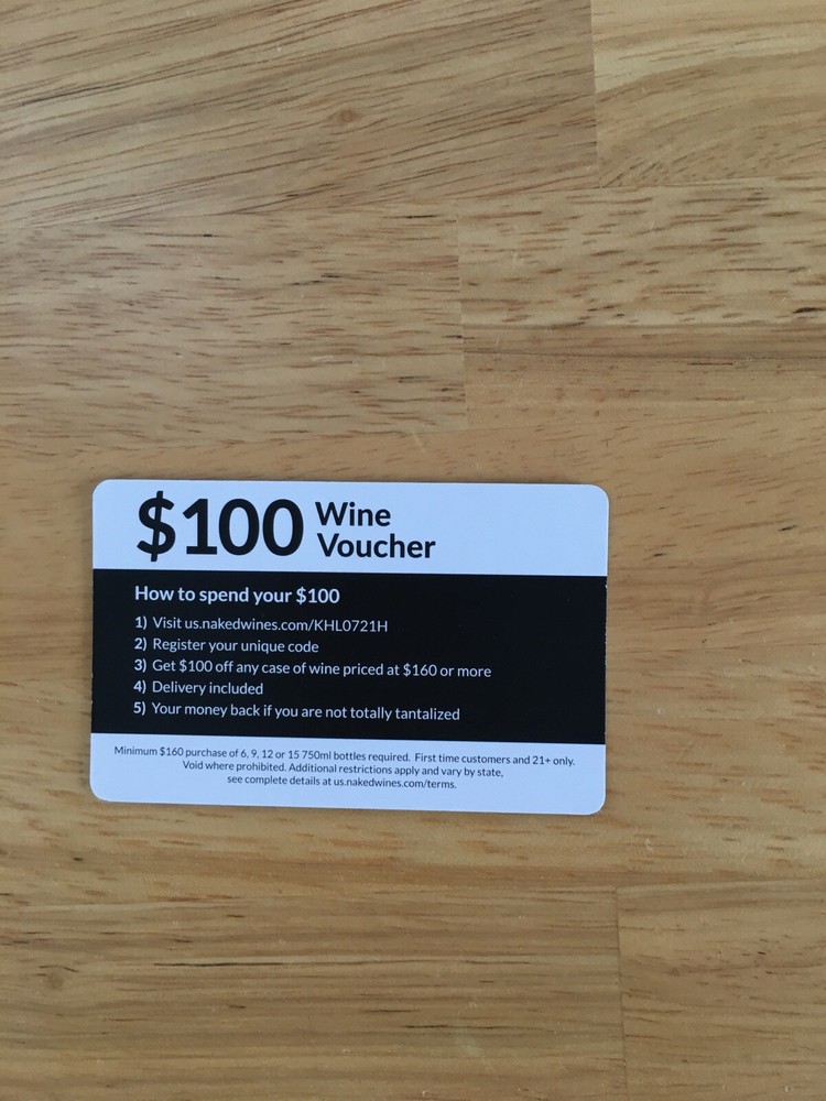 $100 Wine Voucher nakedwines.com. Free Shipping.