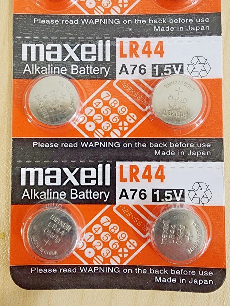 Up for sale are 100 new fresh Maxell LR44/A76 alkaline batteries. EXPIRATION DATES PRINTED ON PACKAGES IS 12/2031 or higher. Package includes 10 packages of 10 batteries per pack for a total of 100 batteries. Applications: Calculators, lasers, toys and many other devices. Replaces: 1131SO, SR44, D357/303, SP357, SR44W, V357, AG13, G13, G13A, A76, PX76, 675, 1166A, L1154, RW82, AG13, A76, 157, PX76A, A76-1, LR44H, V13GA, GP76A, SR44SW, KA, GPA76, LR44 Warning: Keep all batteries out of the reach of children . This product is a small button cell. Swallowing this product can cause serious injury, including internal chemical burns or death. Seek immediate medical attention if it is suspected to be ingested or inserted inside any part of the body. Buy with confidence from a trusted ebay-seller. You may pay securely with Paypal. Thanks for looking.