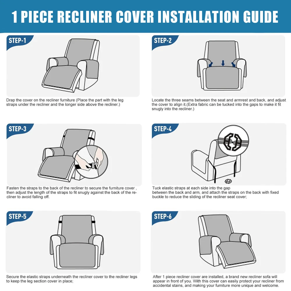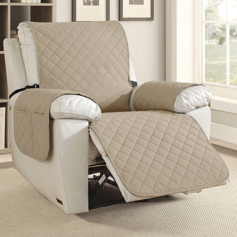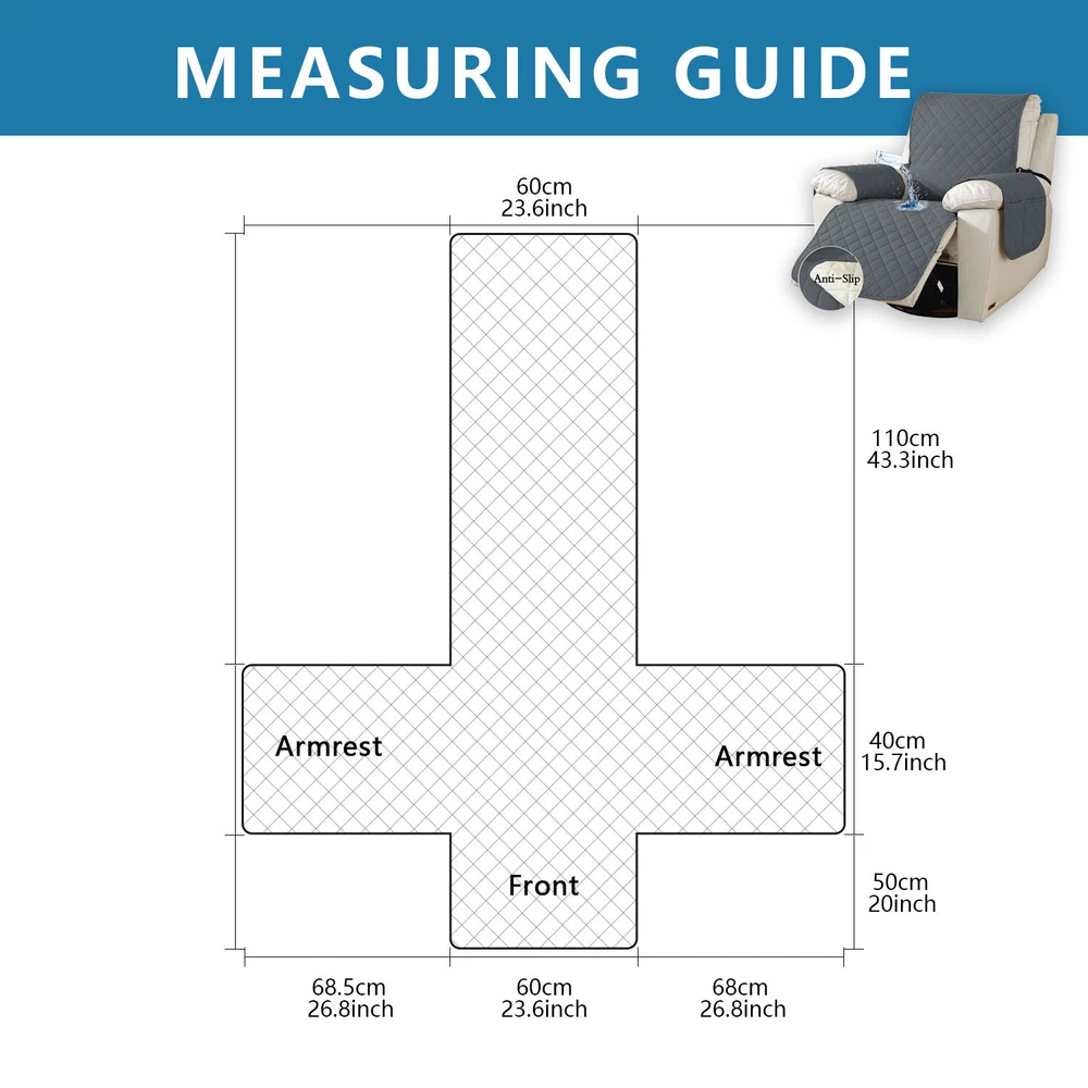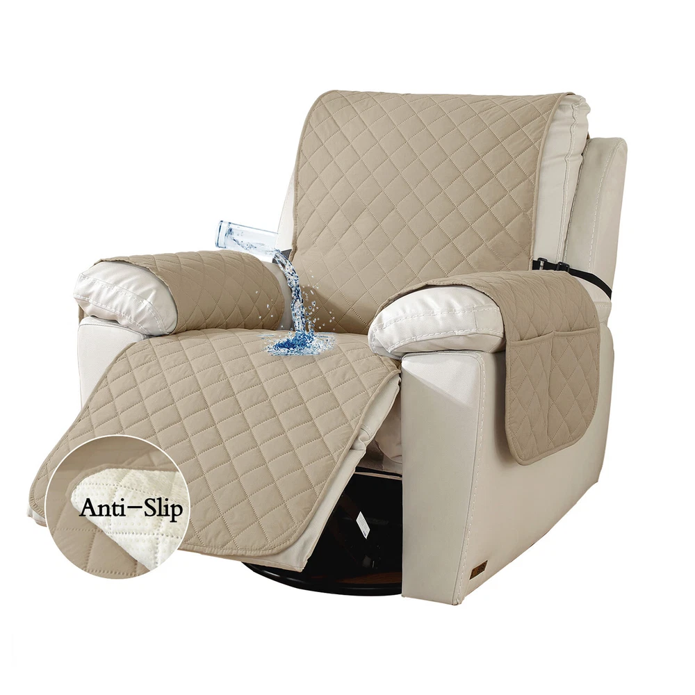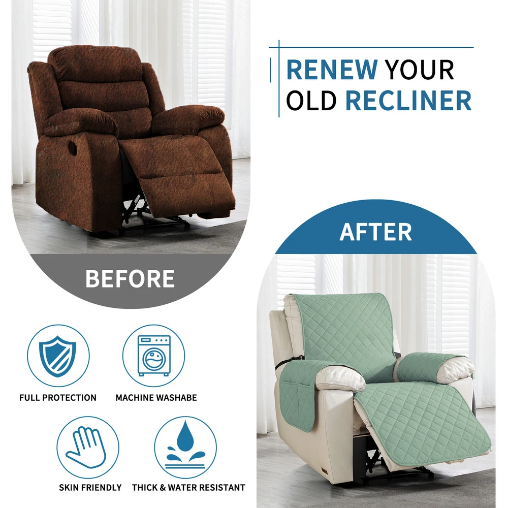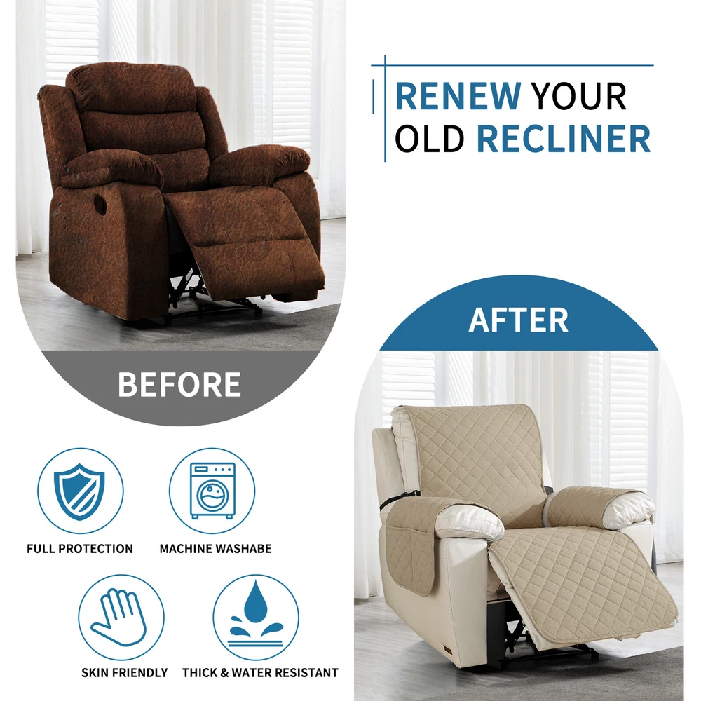 About this item 【100% WATERPROOF FABRIC】We use high-grade fabric to undergo waterproof treatment by coating a waterproof layer on the top, to ensure our recliner chair cover provides 100% guaranteed waterproof and leak-proof features. This new waterproof feature (can be tested), is a great way to protect your sofa from any drinks, spills, daily wear and tear. Making sure your furniture are clean at all times. 【HIGH QUALITY MATERIAL】 reclining chair cover are made of choiceness material, quilted from 5 layers of durable fabric, and the inner-layer is filled with soft texture fabric to make it more comfortable, soft, durable and strong, it would be a great choice for homes with kids and pets. 【REDUCE SLIP-OFF CONCEPT】Reduce movement around! 1. Solid round colloid design on the back of our recliner cover; 2. Additional flexible elastic straps; 3. Two elastic bands at seat's back side and the matching buckle, to reduce the sliding of the recliner chair slipcover, even on the leather furnitures. 【DIMENSIONS GUIDE】 Small pet recliner cover fit a chair with a seat width of 20 in, see measurement guide in photos. NOTE: Please confirm the size before purchasing.(Due to some lighting reasons, the color of each display will be different, so please refer to the actual color.) 【Easy to install & Easy care】Care instruction: Hand or machine washable, wash at a temperature around 30 degrees Celsius, mild laundry detergent advice. Do not bleach. Do not iron. (Service Guarantee: If have any questions on the product, please contact us for help.)