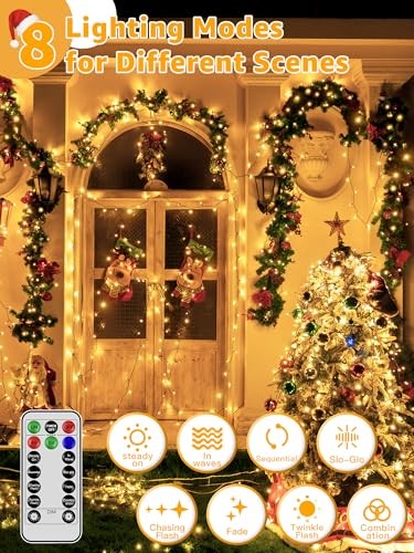 72Ft 200 LED Solar Christmas String Lights with 8 Modes for Outdoor Holiday Decor