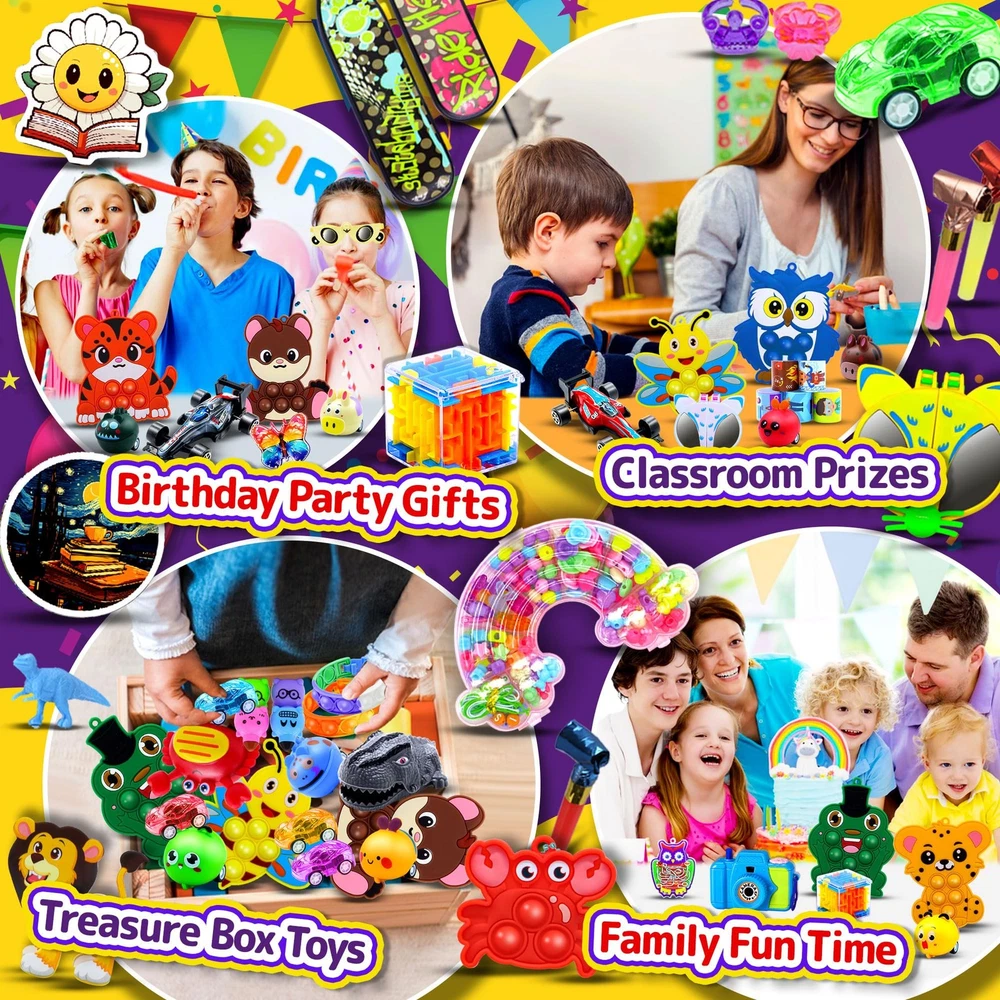 1000 PCS Party Favors for Kids, Bulk Fidget Toys,Goodie Bags Stuffers, Treasure Box Toy for Classroom Prizes, Birthday Gifts, Stocking Pinata Filler Stuffers Product Features Fidget Party Favors for Kids:Our vibrant Kids Party Toys Set includes an exciting assortment of 40 unique toys that are sure to captivate children’s attention and ignite their creativity. Lightweight and portable, these colorful party favors are ideal for any festive occasion, ensuring hours of entertainment and joy. Engaging and Effective Stress Relief Toys:Specially designed sensory fidget toys are very beneficial for children with autism spectrum disorder (ASD) and attention deficit hyperactivity disorder (ADHD), providing children with a fun and effective way to relieve stress and anxiety and keep little hands busy. They are perfect for use while studying, working or playing, helping to improve concentration and focus while helping children to release energy in a positive way. High-Quality&Safe:Crafted from high-quality, non-toxic materials, our party favor toy assortment prioritizes your child's safety. Each toy meets strict safety standards for parents' peace of mind. Durable and built to last, these toys are perfect for energetic play, whether indoors or outdoors. Parents can trust that their children are enjoying safe and fun toys every day. Fantastic Rewards and Gifts for Kids:Bulk toy set is perfect for celebrating achievements, making it an excellent choice for classroom rewards, treasure chest prizes birthday parties gifts, and carnivals programs.Kids interact with each other, make new friends and strengthen existing friendships. This toy set is a great way for children to get together and create wonderful memories. Versatile Fun for Various Events: This treasure toy set is perfect for any occasion, whether a birthday or holiday celebration. Its vibrant colors and variety of toys make it a great fit for any party theme.Use them as party favors, goodie bag stuffers for kids, classroom rewards, Halloween treats,carnival prizes, Chrisrmas stocking stuffers. Parents will appreciate how this set enhances their event while keeping children entertained and engaged. Shipping: Shipping is complimentary within the lower 48 US States. We Do Not Ship to PO/APO Boxes, HI or Alaska We Do Not Ship Outside of the Continental US All items ship within 24-72 hours of Payment For large items that require Freight shipping a valid phone number is required to call and schedule your delivery Terms of Sale and Feedback: Feedback is extremely important to us and eBay If you are satisfied with our transaction, please take a moment to leave Positive Feedback. YOUR Satisfaction is our #1 Priority! If there are any issues, PLEASE contact us BEFORE leaving a neutral or negative rating so that we may resolve any concerns. We PROMISE we can make you happy if you give us a fair chance. Returns / Concerns: All items qualify for returns within 14 - 30 days of receipt. Buyer is responsible for return shipping on any item that is not damaged Please be sure this is an item you want before making your purchase. Customer Satisfaction is our TOP priority! All items are IN STOCK at time of listing. Inventory on eBay changes constantly and it is impossible to maintain a perfectly accurate count of all items. Please do not penalize us if we have to issue you a refund! Thank You For Your Business!