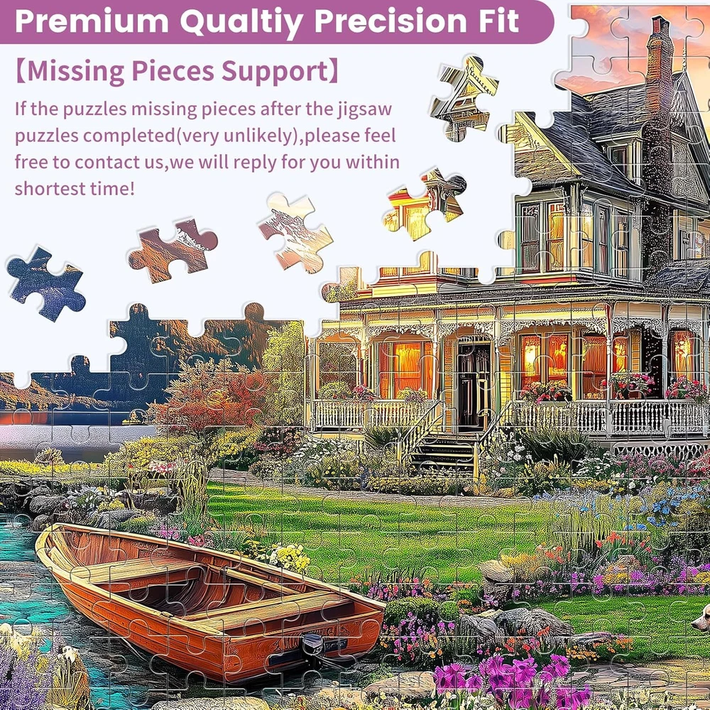 Free eBay listing template designed by dewiso.com 1000 Piece Puzzles for Adults, Autumn Landscape Jigsaw Puzzle, Villa and Dog Jigsaw Puzzles 1000 Pieces, Challenging Game Home Decor Birthday Party Gift Toy for Adults Kids Seniors, 28×20 in FREE AND FAST SHIPPING! [Fall Landscape Jigsaw Puzzle]: This jigsaw puzzle features a villa set against a backdrop of mountains and shimmering water. With blooming flowers and playful dogs adding vibrancy, assemble the pieces to create a lively scene and enjoy a relaxing experience [What You Will Get]: This package includes 1000 piece puzzles for adults along with a poster for easy reference when you need guidance. Additionally, a mesh bag is included for storing your puzzle pieces. These thoughtful accessories ensure you have the best puzzle experience possible [Challenge and Fun]: This jigsaw puzzles is thoughtfully designed with varying difficulty levels to accommodate everyone. Beginners can utilize the letters on the back to identify quadrants for easier assembly, while experienced puzzlers can choose to complete it directly using the poster as a guide [Perfect Gift]: This 1000 piece puzzles for adults large piece is perfect for both adults and kids. It makes a wonderful gift for friends, family, lovers, colleagues, and puzzle enthusiasts, making it ideal for Christmas, birthdays,graduations, and Thanksgiving [What You'll Receive]: If you receive the undersea jigsaw puzzle with any missing or damaged parts, please feel free to contact us through the Ebay messaging system. We promise to provide satisfactory solutions for any possible issues. Product We offer a 30-Day Return Policy on items which you are not completely satisfied with. You have the option for a full-refund or an exchange of the item. No returns are available on items shipped outside of the US . Shipping We offer Free Shipping to the US and ship within 2 business days of payment, usually sooner. We use UPS express shipping. That's why your products are usually delivered within 3 days . Contact We try our very best to make sure every customer is completely satisfied. If there's a problem , message us! We're happy to help. 24/7 live chat available.