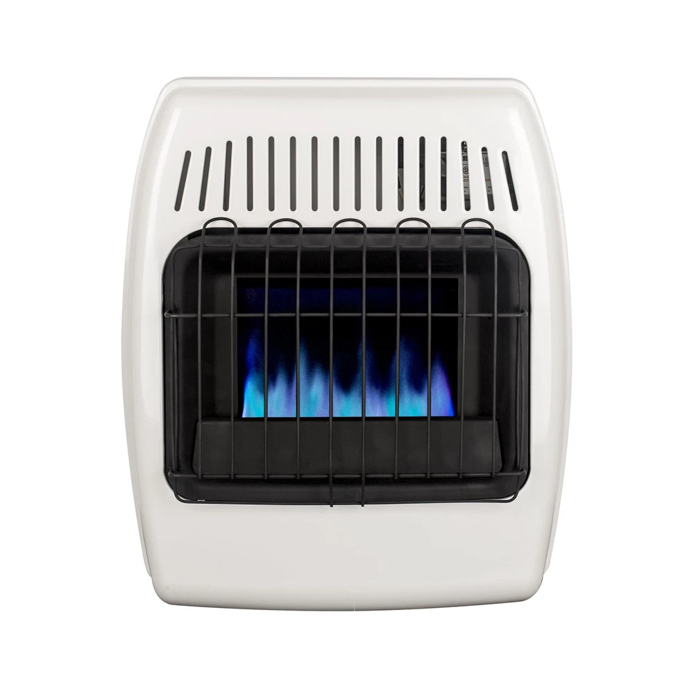 wall heaters are the ideal choice for safe, indoor supplemental heating. This state-of-the-art vent free technology does not require a flue or chimney. These heaters are great for use in your home, cabin, or garage. Since these heaters do not require electricity to operate, they make an excellent choice for everyday heating, and emergency situations when the power goes out. Using blue flame heating technology, heat is distributed similar to your central home heating system. This Blue Flame Wall Heater burns with 99. 9% efficiency, and operates on Propane only. Not for sale in California or Canada. Check your local regulations on installation restrictions and requirements. Propane use requires 100-lb. tank or larger with two-stage adjustable regulator available from local gas company. DEPENDABLE - Ideal for daily supplemental or emergency use, such as power outages ECONOMICAL - Cut heating bills by warming only occupied areas COMFORT – Manually adjust the heat setting to your desired temperature SAFE - Built-in oxygen depletion sensor (ODS) immediately shuts down the heater if carbon monoxide or lack of oxygen is detected CONVENIENT – One continuous press of the battery assisted igniter makes ignition quick & effortless VERSATILE - Includes all necessary hardware & bracket for wall mounting UPGRADEABLE - Separately sold optional base legs (WBL100) provide the alternative of floor mounting. Separately sold optional Wall Heater Fan (WHF100) distributes heat in a quiet, yet powerful way Liquid Propane Ready (Fuel conversion not permitted) Blue Flame Technology works by convecting heat to warm the air the same way as a central heating system 8, 000-10, 000 BTU's/hr. variable heat output for up to 300 sq. ft. Variable control knob offers the most customizable heat settings LOW - 8, 000 BTU MED - 9, 000 BTU HI - 10, 000 BTU No electricity required allows for reliable back-up heating incase of an emergency situation