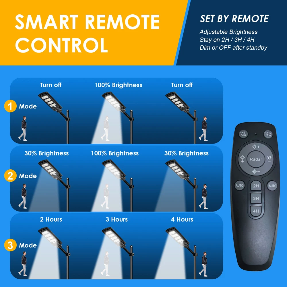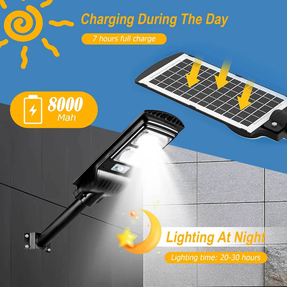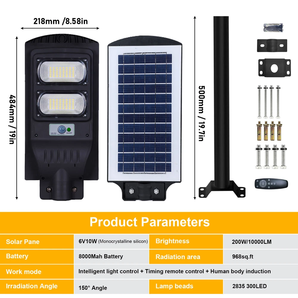 PFCTART 28W 18V Portable Foldable Solar Panel Kit for RV Camping Phone Charging 39.99 USD Free shipping 200W Watt 12V Monocrystalline Solar Panel for 12V Battery Charger RV Boat Home 155.9 USD Free shipping Flexible Mono 50Watt 12V Solar Panel PV Cable 20A Controller for Camping Rooftop 75.99 USD Free shipping 800W Mono Solar Panel Kit with 12V 100AH LiFePO4 Battery for RV Solar Generator 934.99 USD Free shipping 28W 18V Real Watt Portable Travel Solar Panel Kit Foldable For Hiking RV Camping 39.98 USD Free shipping PFCTART 28W 18V Watt Portable Travel Solar Panel Kit Foldable Charger For Hiking 39.99 USD Free shipping PFCTART 1300W 12V Mono Solar Panel 100W 12V/24V/36V/48V PV Module Off Grid Roof 845.9 USD Free shipping 100W 12V Mono Solar Panel Kit for Home Off Grid RV Boat Caravan Soalr Generator 69.99 USD Free shipping PFCTART 300W Solar Panel 12V PV 100Watt Monocrystalline Home RV Roof Shed Marine 219.99 USD Free shipping 40W Portable Foldable Solar Panel for Phone Charger Power Station Camping 49.99 USD Free shipping 600W Mono Solar panel Kit 30A PWM Charger Controller for RV Boat Solar Generator 479.99 USD Free shipping 1000Watt Mono Solar Panel 12V 100W PV Module Kit for RV Boat Off Grid Generator 779.24 USD Free shipping NEW-00021 100% Genuine High Quality Fast Shipping 10000 Lumens Solar Street Light Outdoor,8000mAH Battery 300 LED Street Lamp Set PRODUCT DESCRIPTION 10000 Lumens Solar Street Light Outdoor,8000mAH Battery 300 LED Street Lamp Set Advantage 【 EASY MOUNTING 】 Solar street lights easy installation, screw fixing, dependable operation without the need for wiring or trench. It can be mounted on wall or pole easily (supported pole diameter: 1 inch to 3 inches, suggested fixed height: 13-16.4ft ft ). Notice: Please turn on the outdoor solar gutter lights before installation. 【 FASTER CHARGING 】 Solar lights outdoor environmental protection and energy saving, polycrystalline silicon solar photovoltaic panels have high photoelectric conversion efficiency. High conversion of solar energy, to be fully charged in only 4-6 hours. 【 LONGER LIFETIME AND SAVE MONEY 】 The LED street light lamp is high power LED chip, low power consumption, high brightness, low light decay, energy saving and environmental protection. Use a large capacity LiFePO4 lithium battery with a long lifetime up to two years, the battery can be removed and replaced by itself, eliminating the need to frequently replace your fixture, save installation and maintenance and electricity bills costs. 【 RADAR SENSING & SUNLIGHT CONTROL 】 Solar flag pole light built-in motion sensor and sunlight control regulates light automatically (turn on at dusk, turn off at dawn). LED flood light outdoor turn 100% brightness mode in 2 seconds when motion is detected. It reverts back to 30% energy saving mode again if people out of the detected area. 【 WATERPROOF IP65 】 The Outdoor street light is ABS plastic anti-UV lamp body and new housing inner design with individual sealed boxes for batteries, controller and outer sealed rubber ring protect from water leaking. IP67 waterproof makes it able to withstand a variety of outdoor environments and weather conditions. Specifications Material: ABS Light source type: 150 bright LED2835 lamp beads X2 Battery capacity: brand new 32650 lithium iron phosphate 8000Mah Solar panel: A-grade 6V10W polysilicon Product type: intelligent light control + timing remote control Lamp body size: 484X218MM Irradiation area: 90 square meters Charging time: 7 hours Lighting time: 20-30 hours Waterproof grade: IP65 Installation method: 1. To adjust the desired pattern 2. The lamp mounted to the Arm Adjusting inner six angle serew(Solar panels toward the sun) 3. The arm is mounted to the wall or pole Package Included: 1 x Solar Street Light(Mounting Pole is INCLUDED) 1 x Remote Control 1 x Manual 100% Genuine Best Pricing Fast Shipping PFCTART 12V 150Ah LiFePO4 Lithium Battery Deep Cycle RV Trolling Motor Marine 419.9 USD Free shipping 1280Wh 100Ah LiFePO4 Lithium Battery Rechargeable Witk 100A BMS Home RV Camping 299.99 USD Free shipping 12V 100Ah LiFePO4 Lithium Iron Phosphate Battery with 100A BMS for Solar RV Boat 285.29 USD Free shipping 50Ah LiFePO4 Lithium Battery Rechargeable with 50A BMS Home RV Camping Marine 169.99 USD Free shipping 12V 150AH LiFePO4 Lithium Battery with 100A BMS Deep Cycle Marine RV GOLF CART 419.58 USD Free shipping 12V 200Ah LiFePO4 Battery Lithium Iron Rechargeable Deep Cycle Home RV Camping 589.99 USD Free shipping 12V 100Ah LiFePO4 Lithium Battery 1280WH With 100A BMS for RV Solar Off grid Kit 299.99 USD Free shipping LiFePO4 Deep Cycle Lithium Battery 12V/24V/48V 10AH 200Ah 400Ah 600Ah For Home 745.35 USD Free shipping 50AH 12.8V Deep Cycle Lithium Battery LiFePO4 50A BMS for RV Boat Solar Home BMS 169.58 USD Free shipping 12V 7AH LiFePO4 Lithium Replacement Battery 4500+ Deep Cycle for RV Off-Grid 36.59 USD Free shipping 12.8V 100Ah LiFePO4 Lithium Battery 1280WH Rechargeable 100A BMS for Home RV 299.56 USD Free shipping PFCTART 50Ah LiFePO4 Lithium Battery Rechargeable with 50A BMS for Home Camping 169.68 USD Free shipping