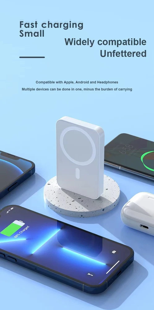 10000mAh PD20W Mini Wireless Fast Charger Battery Magnetic Power Bank For iPhone Product Description Brand Unbranded Type Magnetic Charger Items Included Charging & Data Sync Cable Number of Ports 1 Voltage 5 V Features Wireless Charging Compatible Brand Universal,For Apple Color Pink Material Plastic Mounting Type Magnet Connectivity Wireless Wireless Charging Standard Magnetic Country/Region of Manufacture China Payment Policy Shipping Policy Returns Policy Payment Policy Payment If buyer want to delay the payment because of financial problem, please contact me by the ebay message within 3 days Payment via PayPal (PayPal accepts all major credits/debit cards and eCheque) ECheque payment will tak e 3-10 days to get clear, thus DELAYing the shipment. Shipping Policy Shipping United States 7-15 business days UK/ Canada/ Australia 15-35 business days Others 4-8 weeks due to the strict Custom Inspection Sometimes your order may be impacted by extreme bad weather, strikes or other unexpected events. If you have such concerns, please kindly contact us. We are happy to assist you. Returns Policy Returns Return is accepted within 30 days after the buyer's receiving the item. (Excluding contrived damagement or misusage).100% money-back Guaranteed! All product will be tested in 100% before delivery.If the item is defected by the processing of postage,Buyer has up to 14 days from date of receipt for exchange of a new one.All shipping charges for returned products are to be paid by the buyer,Please contact us for the return address Copyright © 2023 Dianxiaomi