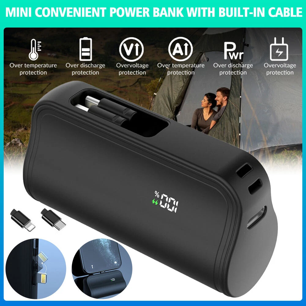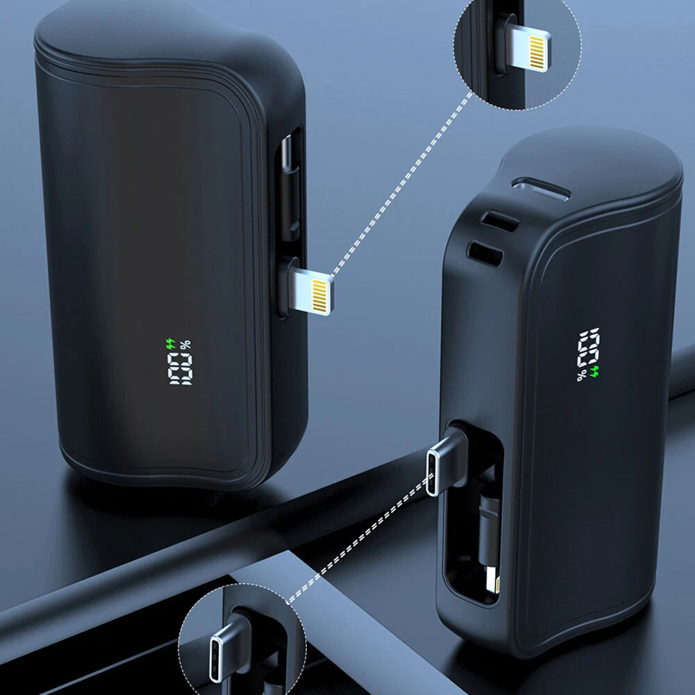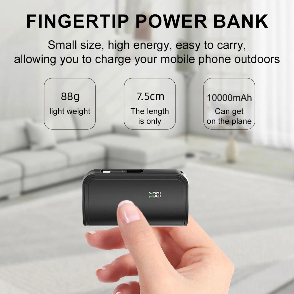 Specification: Product type: mini convenient self-wired charging treasure-LCD real power display Product size: 8*4.5*2.7cm USB-C input: 5V/2.4A USB-C charging head output: 5V/2.4A Charger 2 output: 5V/2.4A Battery capacity: 10000AMH Output Connector: for iphone / Type-C Charging power: 5W Battery type: polymer lithium-ion batteries Product shell material: alloy Advantage: Dual Head Hidden Charger; Shrinkable storage compact and easy to carry charging; LCD real power display; Cell phone holder function; Can be equipped with lanyard design; Support Apple 15 & about all cell phones are supported basically; Support 99% market holster; Multiple protection, can be on the airplane Compatible models: For iPhone XS / For iPhone XS Max For iPhone X / For iPhone XR For iPhone 8 / For iPhone 8 Plus For iPhone 7 / For iPhone 7 Plus For iPhone 6 / For iPhone 6 Plus For iPhone 6s / For iPhone 6s Plus For iPhone 5 / For iPhone 5s For iPhone 11 / For iPhone 11 Pro / For iPhone 11 Pro Max For iPhone 12 / For iPhone 12 Pro/ For iPhone 12 Pro Max/ For 12 mini For iPhone 13 / For iPhone 13 Pro/ For iPhone 13 Pro Max/ For 13 mini For iPhone 14 / 14 Plus / 14 Pro / 14 Pro Max For iPhone 15/15 Plus/15 Pro/15 Pro Max For AirPods/AirPods Pro For Android Samsung Galaxy/Xiaomi/Google/HTC/LG/Redmi/Oneplus and other Type C devices Package included: 1 x mini power bank