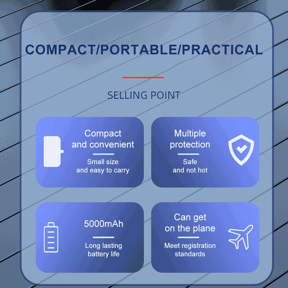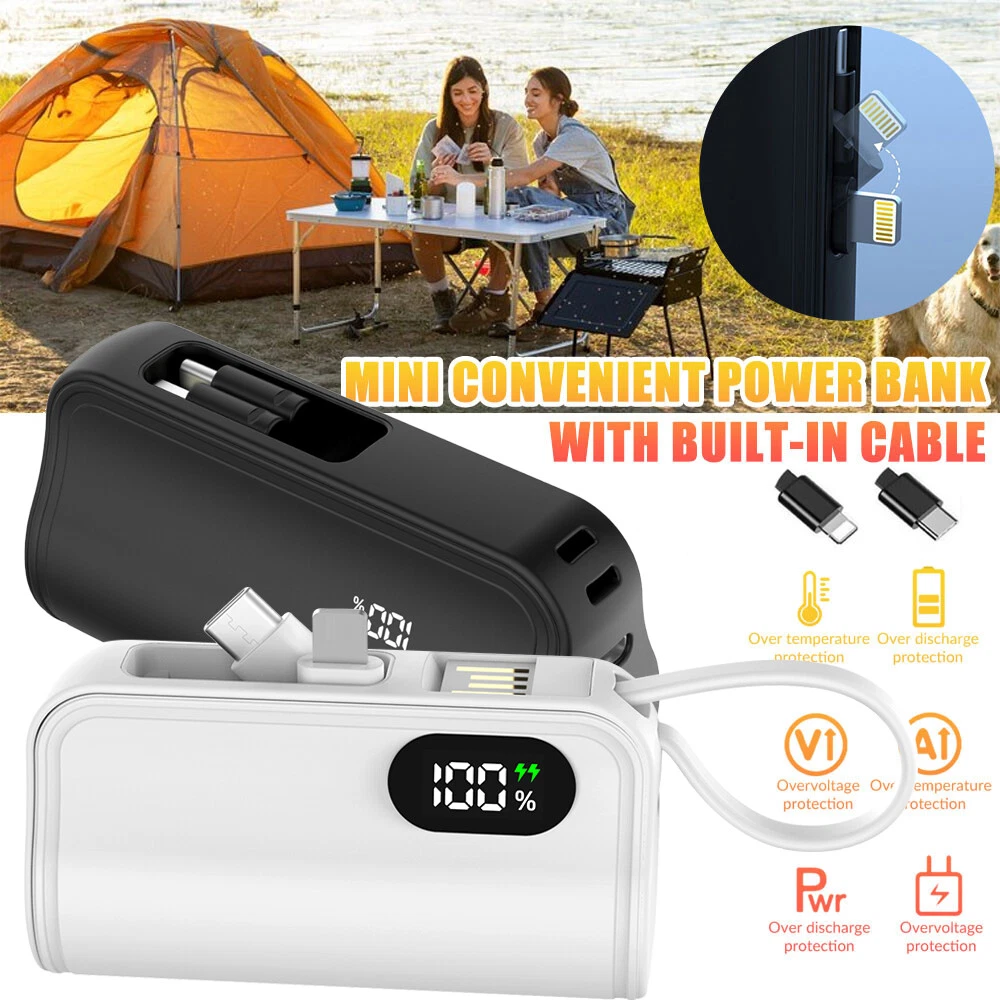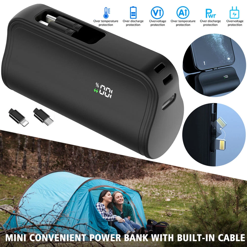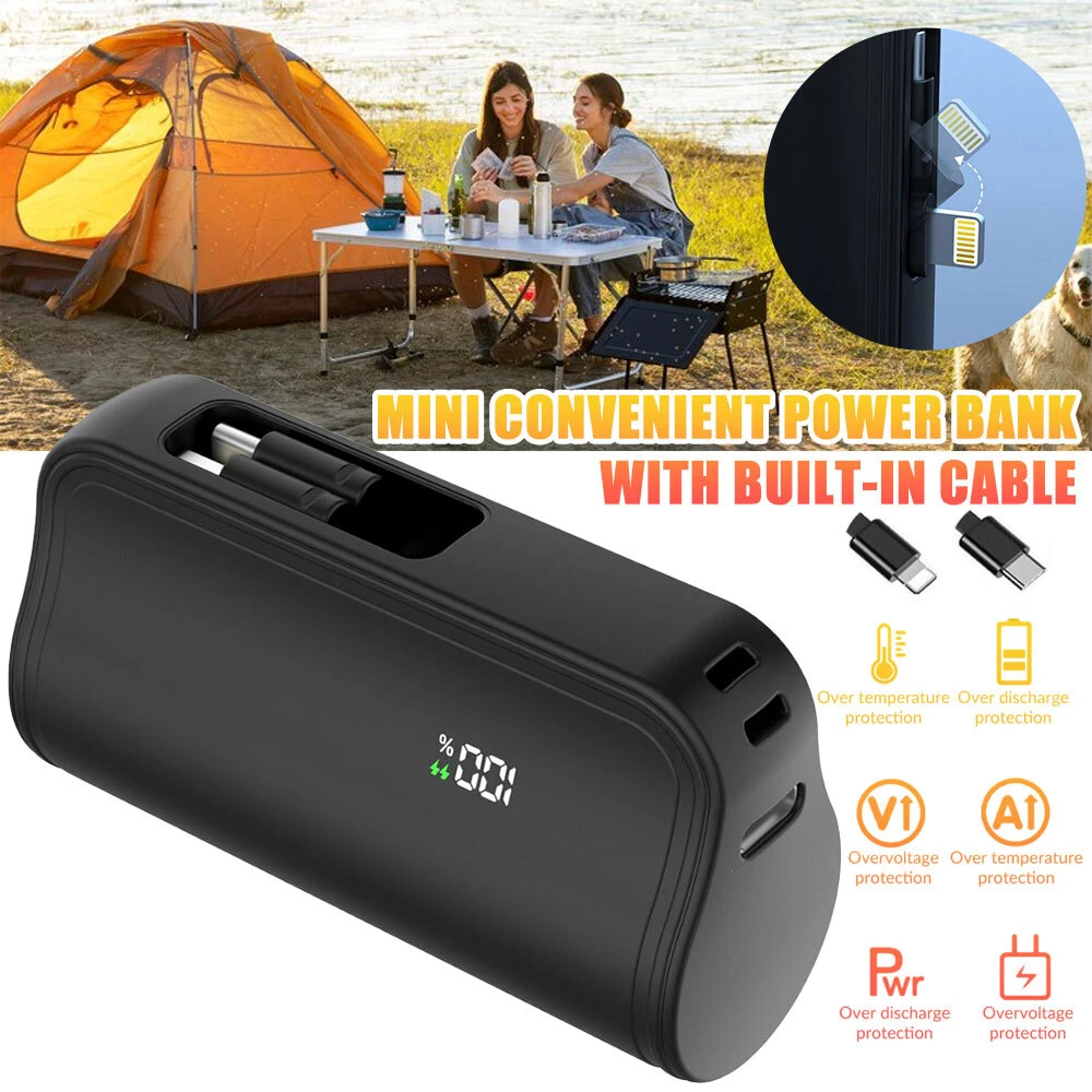 Specification: Product type: mini convenient self-wired charging treasure-LCD real power display Product size: 8*4.5*2.7cm USB-C input: 5V/2.4A USB-C charging head output: 5V/2.4A Charger 2 output: 5V/2.4A Battery capacity: 10000AMH Output Connector: for iphone / Type-C Charging power: 5W Battery type: polymer lithium-ion batteries Product shell material: alloy Advantage: Dual Head Hidden Charger; Shrinkable storage compact and easy to carry charging; LCD real power display; Cell phone holder function; Can be equipped with lanyard design; Support Apple 15 & about all cell phones are supported basically; Support 99% market holster; Multiple protection, can be on the airplane Compatible models: For iPhone XS / For iPhone XS Max For iPhone X / For iPhone XR For iPhone 8 / For iPhone 8 Plus For iPhone 7 / For iPhone 7 Plus For iPhone 6 / For iPhone 6 Plus For iPhone 6s / For iPhone 6s Plus For iPhone 5 / For iPhone 5s For iPhone 11 / For iPhone 11 Pro / For iPhone 11 Pro Max For iPhone 12 / For iPhone 12 Pro/ For iPhone 12 Pro Max/ For 12 mini For iPhone 13 / For iPhone 13 Pro/ For iPhone 13 Pro Max/ For 13 mini For iPhone 14 / 14 Plus / 14 Pro / 14 Pro Max For iPhone 15/15 Plus/15 Pro/15 Pro Max For AirPods/AirPods Pro For Android Samsung Galaxy/Xiaomi/Google/HTC/LG/Redmi/Oneplus and other Type C devices Package included: 1 x mini power bank