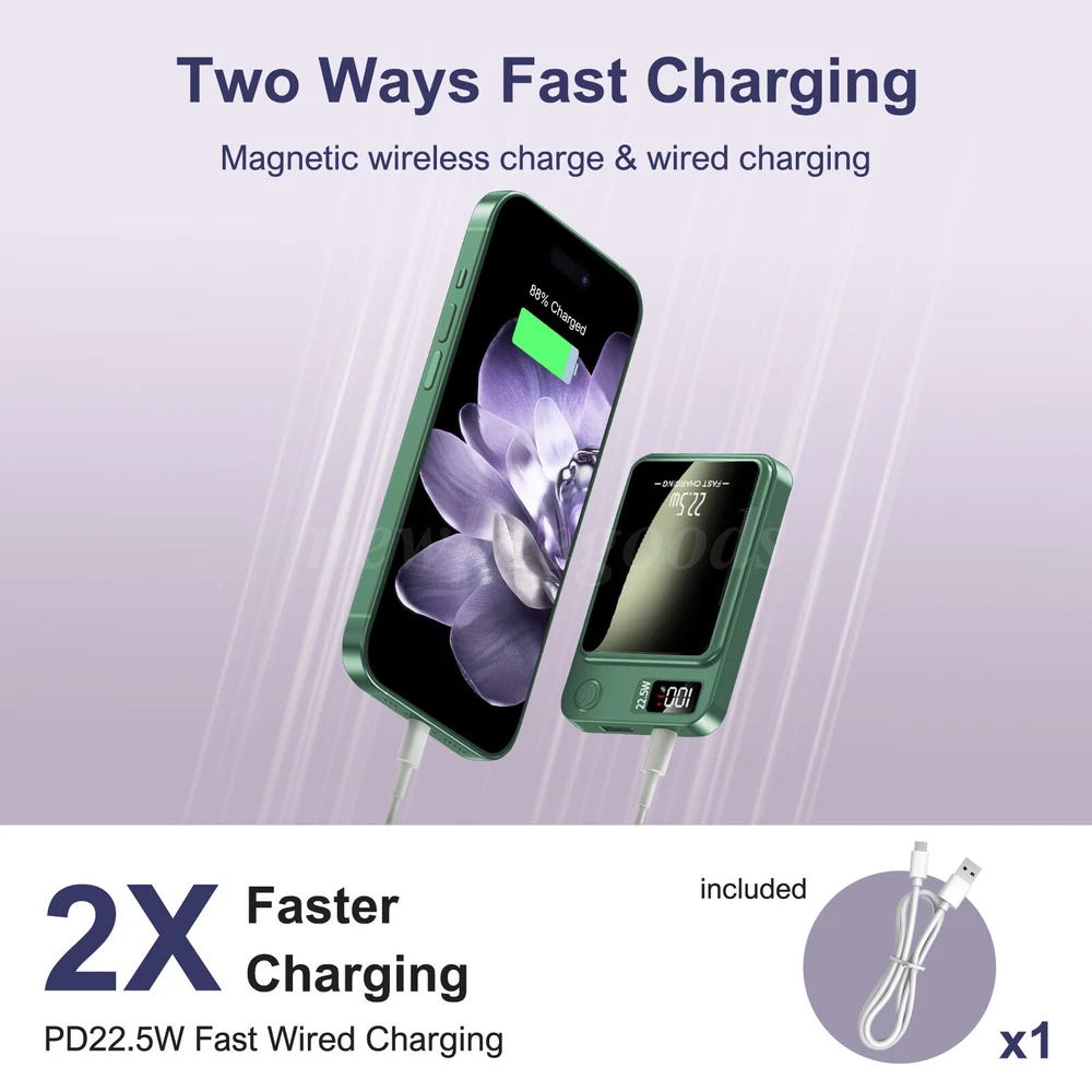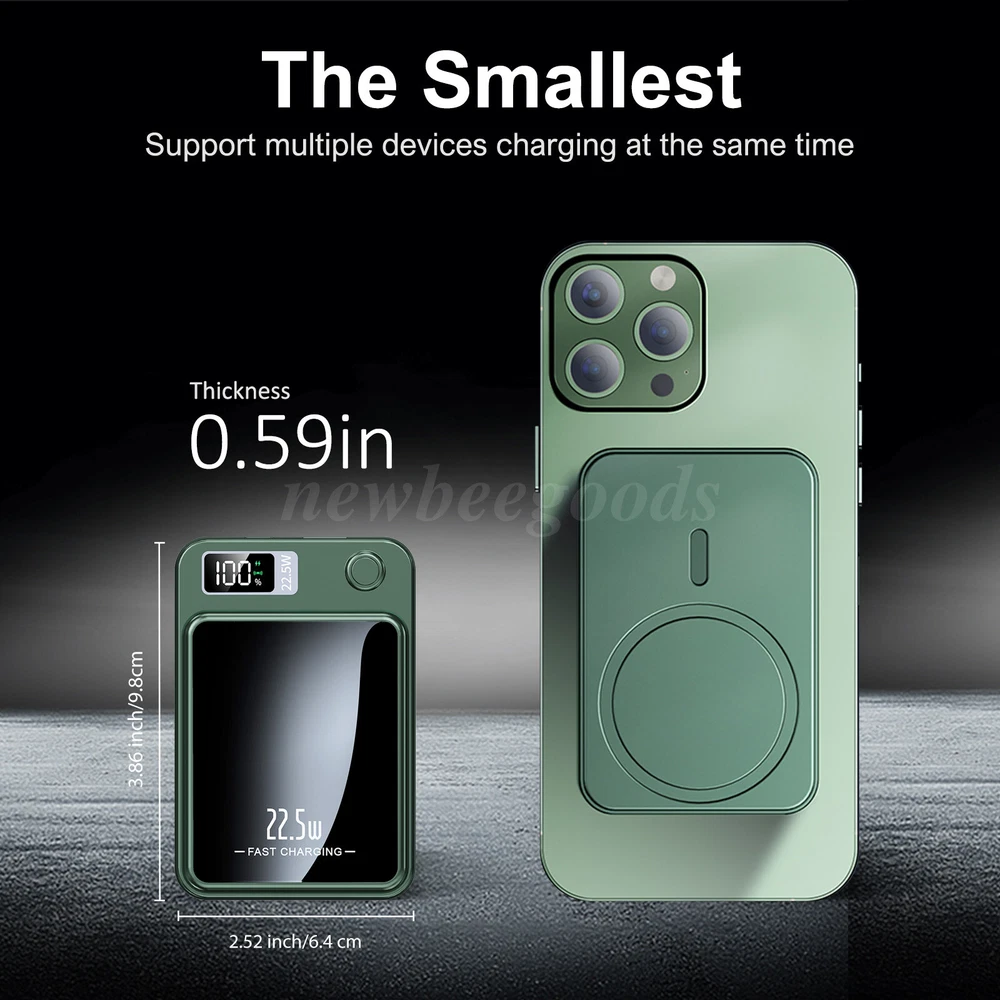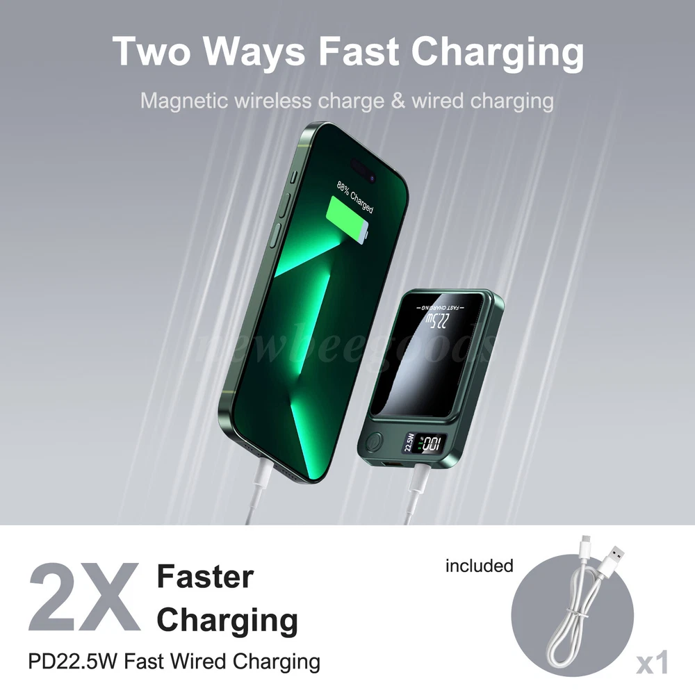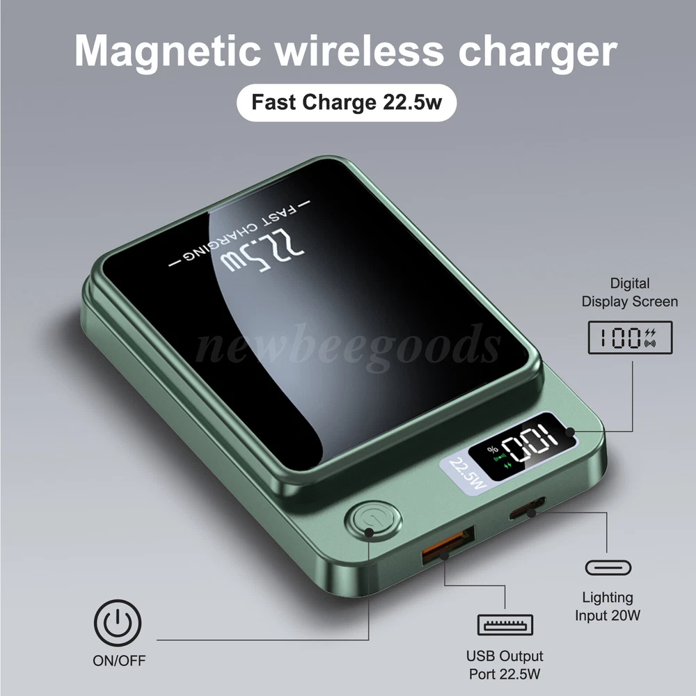 Welcome to NewBeeGoods feedback | contact us Location United States Hours Open 24/7 Support Feel free to Contact us Electronics Motors Supplies Home & Garden Pet Supplies Business & Industrial Newbeegoods USD 13.98 10000mAh Power Bank Magnetic Battery Pack Wireless Charger for iPhone 16/15/14/X Description: This magnetic wireless power bank combines the latest safety technology with excellent heat dissipation design, providing multiple intelligent protections to ensure worry-free charging. With magnetic fast charging, just a touch to charge, freeing you from cable constraints whether you're driving or resting. The 10000 mAh large capacity is widely compatible with multiple devices, meeting all your charging needs. The precise LED display clearly shows the battery status at a glance. Its compact and slim design, made of aluminum alloy, is stylish and durable, easy to carry without burden. Dual-mode charging—wireless and wired—allows for seamless switching. A charging cable is included for convenient recharging of the power bank itself. Whether traveling alone or gathering with friends, enjoy worry-free charging and stay powered every moment. Specification: Type: Magnetic Wireless Power Bank Capacity: 10000mAh Battery Type: Polymer Lithium-Ion Battery Charging Power: PD 22.5W Size: 98×64×15mm / 3.86×2.52×0.59 inches Material: ABS + PC Color: Green Input: DC 9V 2.2A Output: 5V 3A Compatibility: 99% of smartphones and tablets Features: 【Safety Technology, Excellent Heat Dissipation】 This portable charger uses the latest safe charging technology as its core to provide unprecedented security for your devices. Multiple intelligent safety features include overcurrent protection, overheating warning, precise overcharge prevention, and automatic short-circuit cut-off, fully protecting the charging process. The power bank uses tightly wound pure copper coils combined with the excellent heat dissipation performance of the aluminum alloy body to ensure efficient and stable charging, even under high-intensity use, maintaining a calm and extended lifespan. 【Magnetic Fast Charging, Instant Activation】 Experience unparalleled charging convenience with the magnetic wireless portable charger. Its strong magnet securely attaches to your phone, activating charging instantly. The latest magnetic technology eliminates cable constraints, allowing seamless charging whether driving or resting. 【Wide Compatibility, Energy Abundance】 With a 10000mAh large capacity, this charger is not only an ideal companion for your phone but also a power source for various smart devices. It supports smartphones, tablets, portable fans, headphones, AirPods, fitness bands, and smartwatches, meeting all your charging needs and keeping you fully charged on every journey. 【Precise Display, Full Control】 Equipped with advanced intelligent digital display technology, the LED screen clearly shows the available power and charging status with 100% precision, allowing you to monitor charging progress, eliminate power guesswork, and enjoy a sense of control. 【Compact and Portable, Stylish Design】 With a slim body of only 3.86×2.52×0.59 inches and made of aluminum alloy, this power bank is not only stylish and durable but also offers excellent heat dissipation. Its lightweight design easily fits into pockets or car compartments, ensuring worry-free charging anytime, anywhere. 【Dual-Mode, Seamless Switching】 The dual-mode charging capability—wired and wireless—caters to your various charging needs in different scenarios. The included charging cable effortlessly recharges the power bank itself, ensuring it's always ready. Whether traveling solo or gathering with friends, enjoy a worry-free charging experience. Package Contents: 1 × Power Bank 1 × Charging Cable 1 × User Manual Note: 1. Please allow slight deviations due to manual measurements. 2. The actual product may slightly differ from the pictures due to differences in display and lighting. 3. Product details may vary depending on production batches. If you are concerned about any discrepancies, please purchase with caution. Thank you for your understanding. 4. If you have any questions about the product, please feel free to contact us. Shipping Returns Payment We only support transactions through the eBay, not other channels. We support all payment methods recommended by ebay. We promise to protect all the private information of our customers. It will take about 1-5 working days to reach you within USA. If your item develops a fault due to a manufacturing defect please contact us and we guarantee a satisfactory solution. If you return your item for any other reason within 30 days from receipt we will refund you. 100% Feedback - we're proud of our 100% record and aim to keep it that way! Please contact us if you're not entirely happy with your order and we'll try to rectify it ASAP! Our aim is to ship within 24 hours. All of our products are shipped locally from USA, with warehouses in PA and CA. But most of our inventory is in CA, so 90% of our products are packaged and delivered to you at our CA warehouse. We recommend using economy and standard shipping for shipping, such as FedEx and USPS. Due to various traffic and policy limited, express shipping sometimes does not deliver in time. Normaly, you will take the item within 1-5 days after you place it. other products Consumer Electronics BGPS, Video, Camera, Radio, and other Smart Electronics Motors Supplies LED Headlighs, Fog Lights, Seat Belt, Jump Starter Home & Garden Home Storage, Cleaning, Lighting, and Other Tools Pet Supplies Training, Grooming, Living, Eating for Pet About Newbeegoods Newbeegoods was born in Nov 11, 2022. We have been deeply involved in the auto and motorcycle parts industry for decades, and since 2020 we have been creating our e-commerce company, as well as expanding our business into other industries. Newbeegoods is already one of our 24 e-commerce subsidiaries and we t