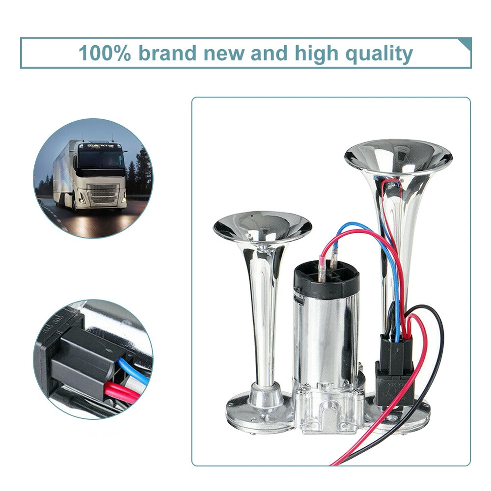 Horn Type:ElectricUPC:Does not applyVoltage:12VBrand:UnbrandedType:Dual Trumpet Electric Horngtin13:Does not applyManufacturer:ChinaDB Output:1000DBColor:SilverManufacturer Part Number:Does Not Apply