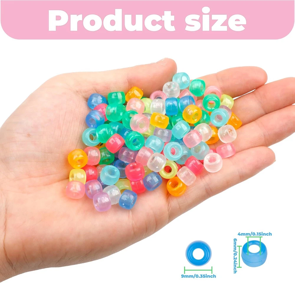 1000Pcs Glow in The Dark Pony Beads 9mm Small, - 9 Color Product Details Color: Glow in The Dark - 9 Color Material: Acrylic Plastic Size: Small Brand: Auvoau Shape: Bicone Number of Pieces: 1000 Manufacturer: Auvoau Product Dimensions: 4 x 3 x 1 inches Item Weight: 10.5 ounces Item model number: pony beads 【1000Pcs Pony Beads】Each package contains of 1000Pcs rainbow colors large hole opaque matte pony beads along.Enough quantity to meet DIY needs 【Size & Matirial】Barrel Pony Beads 6x9mm,Hole Diameter 4mm.Made of quality acrylic plastic, colorful pony beads are well made with nice craftsmanship, sturdy and waterproof, smooth in surface, not easy to fade, consistent color with shiny luster. 【Great Variety Colors】With awesome assortment of colors, you will surely enjoy crafting your bead jewelry!Including green, red, yellow, blue, white, black,orange,purple,pink,etc. 【Funny DIY】Pony beads for bracelets making are not only suitable for making beautiful necklaces, bracelets, keychains, anklets, earrings and many other decorations, but also suitable for making cute cartoon or animal images. 【Widely Use】These craft plastic beads for jewelry making can be matched with pipe cleaners to create many Thanksgiving elements, such as pumpkins, maple leaves, and wreaths.you can also mix or match fall beads in different combinations for making unique bracelets, necklaces, earrings, mobile phone lanyards, etc . Auvoau rainbow pony beads vibrant providing you a great assortment for making necklaces, bracelets, hair braids as well as many other craft and jewelry projects.Material:Plastic.Features:1.Work on creating amazing patterns with these pony beads, there will be so much fun to make the perfect personalized friendship bead bracelet, Kandi bracelets and necklaces, keychains. 2.Light weight and Durable: Our Pony beads are sturdy, light and smooth. They can be used on hair, bracelet and other jewelry while you feel wearing nothing.