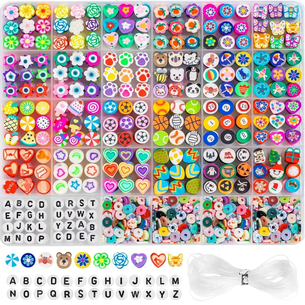 Diverse Bracelet Beads Kit Assortment:approximate 1000 pcs beads,Includes 10mm clay beads,hole is 2mm, 6mm flat clay beads,hole is 2mm,4x7mm letter beads, hole is 1mm,with 1pcs 0.8mm bracelet string catering to various DIY jewelry making needs. High-Quality Craftsmanship:Each bead is carefully crafted with precision, ensuring a consistent and high-quality product that meets the standards of discerning crafters. Vibrant Colors, Fade-Resistant:The clay beads kit feature bright and vibrant colors that are specially treated to resist fading over time, maintaining the aesthetic appeal and longevity of your creations. Versatile Applications:Ideal for creating a variety of fashion accessories such as bracelets, necklaces, earrings, and pendants,It also makes a perfect gift, especially for young girls. Unleash Creativity and Enjoy Crafting:These clay beads kit are designed to inspire creativity and provide a fun and engaging crafting experience, allowing you to create unique and personalized jewelry pieces.
