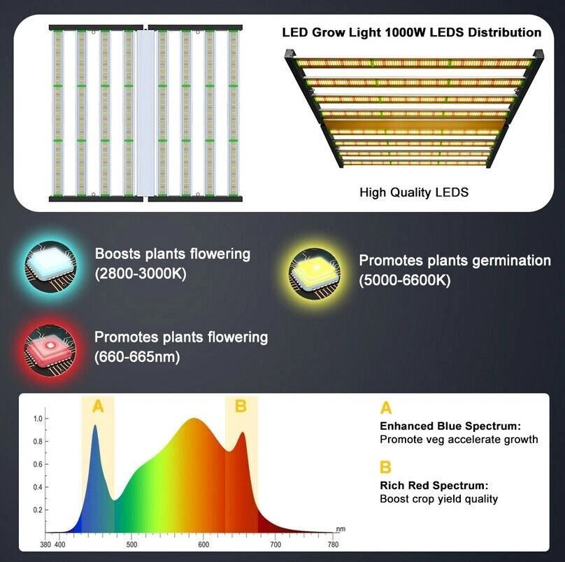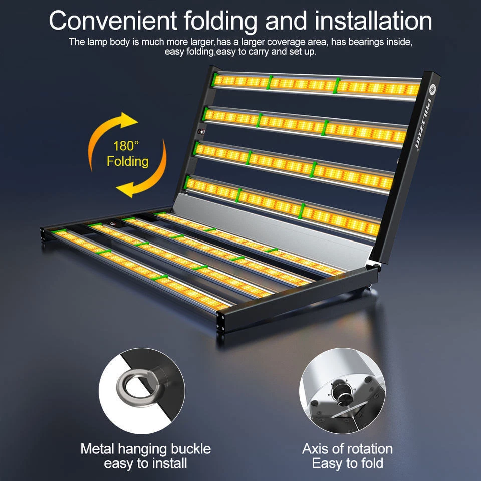 Spider 1000W Full Spectrum Grow Light SamsungLM561C Dimmable Commercial Bar Lamp Uniform PAR Distribution and High PPFD Output: Within the effective coverage area, the PPFD of every point is in the perfect range of 1500-1978umol/s/m2, achieving a uniform crash! 50% higher PPFD and 50% lower power consumption compared to HID lights, which helps maximize production by 30-70% Daisy chain Dimming Function: The Dimming function is available for brightness from 10% to 100% by one dimmer knob Up to 30 lights can be daisy chained together and controlled by just one material light Top quality LEDs and Low Current Drive: The entire light is built with Samsung LM281B and Red 660nm LEDs, quality guaranteed Use more than two as many LEDs as minor lights to drive the grow lights with low current and avoid overdrive Aluminum Heat Sink&IP65 Waterproof: Wave shaped heat sink increases the heat distribution area, to gain an optimal heat distribution performance IP65 waterproof level allows the light to work in humid environments without vocabulary Marvelous Customer Care: Light pass Strict quality standard DLC, ETL, UL, CE, RoHS, UKCA certificate Stronger hanging kits are available for easy installation 100% Safe to use, zero risks! No word of fire or security threat, long life Wonderful Service: Discreet package guaranteed 3-7 Working days delivery time Warehouse in US/AU/UK/DE/CA/RU, free and fast shipping with standard plug from the local warehouse Specification of Phlizon FD 8000 1000W Led Grow Light Full Spectrum Indoor Plants Model: PHLIZON FD8000 1000W led grow light (Dimmable) Feature: Sunlike Spectrum+Foldable+Samsung LM281B and RED 660 Chips+0dB+dimmable Personal Coverage:6ft × 6ft=1.8x1.8m;Commercial Coverage: 5ft × 5ft= 1.5m × 1.5m Max Yield: 2.9g/watt PPE: 2.9 umol/j PAR Value: 1978umol/S@AC120V-240V, Uniform PPFD than other brand LED Replace HID/MH: 2000w, more energy-saving Power draw(±10%):1000W±5%@AC120-277V Dimensions(L/W/H): 41.7x45.7x3inches=106X116X7.8 CM Amp Draw: 8.33A@AC120V, 4.16A@AC240V, 3.61A@AC277V Lumen(±5%): 120000Lm@AC120V, Item Net Weight/Gross Weight: 18.7KG/19.5KG Spectrum: 660-665nm,2800-3000K,4800-5000K, (Use for all stages of plants growth and flowering.) LED Type:Samsung LM281B and Osram 660nm Noise Level: 0 DB Input Voltage: 100V-227V(AC) Life Rating: 50000-100000 hours Recommend light and tent combo: FD 8000 led+6'x6' tent Certification: DLC, ETL, UL, CE, RoHS, SAA, PSE, 100% Authentic Safe guaranteed! 5 Years warranty for US/UK/CA/DE/EU/AU buyers+30 days return guarantee 3 Package includes 1 x LED Grow Light 1 Set x Free Steel Hanging kits (Easy installation) 1 x Free Warranty cards 1 x Free Power cord with Plug(US plug) Application 1) Seeding/Breeding/Veg/Flower/For all planning stages/Green Vegs/Flower Plant/Fruit Plant/Herbs/Medical/Meat Plant, etc 2) Hydronics/Horticulture/Industrial plants/Greenhouse Lighting/Pot Culture/Farm/Water Double Brewing/Pipeline Culture, etc 3) Exhibition/House Garden/Bonsai/Home/Commercial Crops/Project/Personal Growth/Urban and University Research ect WHY CHOOSE US We can do whatever we can to ensure that interests of consumers SupplyDirectly from factory ExpressFast discreet delivery PriceNo physical stores no middleman Service100% satisfied customer service Warehouse US/UK/EU warehouses RECOMMENDED FOR: Commercial windows Greenhouses Home windows (rooms and tents) Soil, hydroponic, aeronic, or aquatic systems Indoor farming or gardening 30 days in return and 3 years warranty so that you can buy with confidence WHY CHOOSE PHLIZON BRAND GROW LI Delivery details Terms of sales About us Contact us WHY CHOOSE PHLIZON BRAND GROW LI PHLIZON is your one-stop-shop quality LED GROW LIGHTS and HYDROPONIC Designer & Manufacturer Phlizon has been developed by growers over Ten years of careful experimentation and testing . We mainly produce the led grow light and Hydroponics accessories in Agricultural Greenhouses help indoor and outdoor plants growing. Scientifically engineered to deliver the highest level of PAR output and balanced Coverage in the Commercial LED grow market. Phlizon LED Grow Lights are built with high quality Samsung diodes and Cree cobs. The lights encompass a continuous range of wavelength from blue and green to red, creating a Full spectrum light blend matching the natural sunlight. PHLIZON customized our light spectrum to optimize plant growth and increase yields while consuming less energy and reducing operating costs compared with traditional horticulture technologies. Higher Light Intensity, Better Coverage, More advanced features ( dimmer and wifi control US,EU,RU,DE,UK Local warehouses for fast shipment.95% of the goods are in 4-7 days Fast Delivery Delivery details CA & DE & US & UK Warehouse 3-7 days fast Shipping EU Buyers-Shipping from DE warehouse with EU Plug ,no customs, US Buyers-shipping from US warehouse with US Plug,no customs,no taxes UK Buyers-Shipping from UK warehouse with UK Plug,no customs CA Buyers-shipping from CA warehouse with CA Plug,no customs,no taxes Other country buyer will be shipped from china warehouse via Fedex , DHL ,UPS express , buyer need to take the customs and taxes by yourself ,thanks :) No customs problem, for DE/CA/US/UK buyer ,we will ship you the plug required for your country.Fast Shipment. Pls note , if the light are more than 12kg , pls ask me for taxes and customs . if you need bulk order , we can ship it out via sea shipping or railway shipping free of customs & taxes International Shipping International customers are welcome! We currently offer shipping to over 100 countries. International orders may require longer handling time International orders may be subject to local import fees, duty, customs, VAT charges or additional taxes , depending on the country of destination tax laws. We are not responsible for any of these tax charges , nor can we offer any specific advice on import fees, duty, customs, VAT or taxes that you may be required to pay upon the arrival 