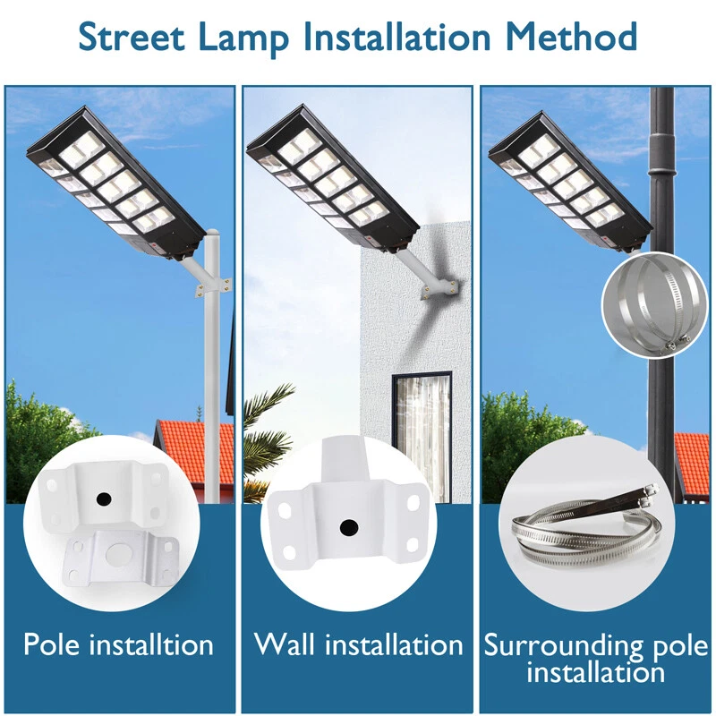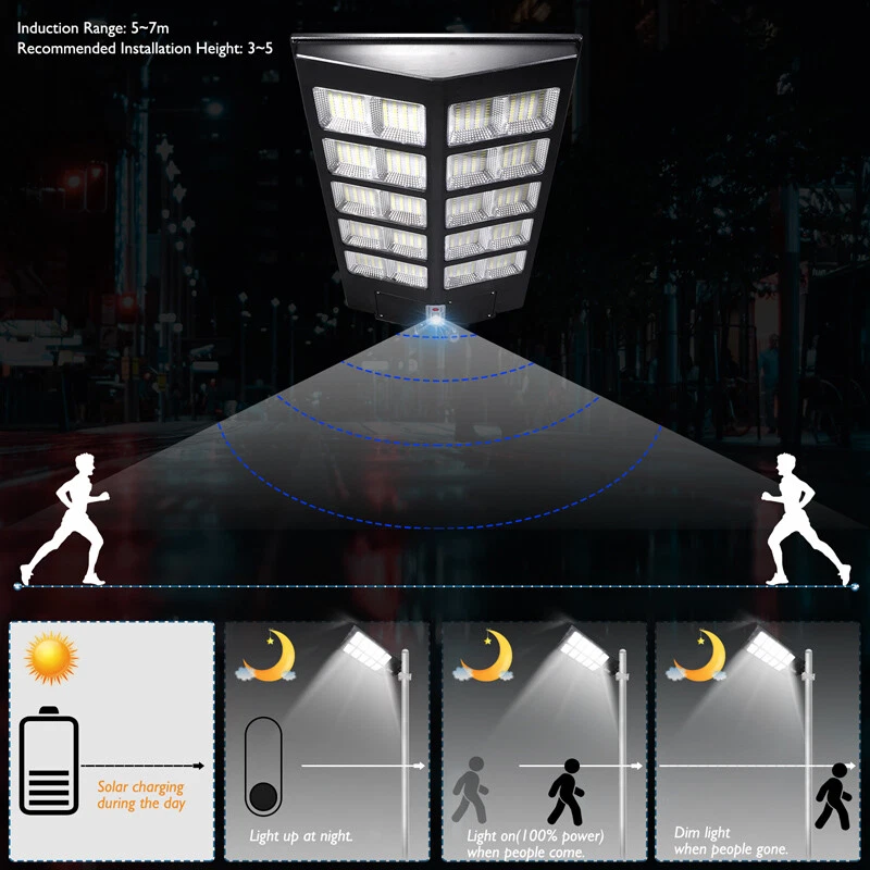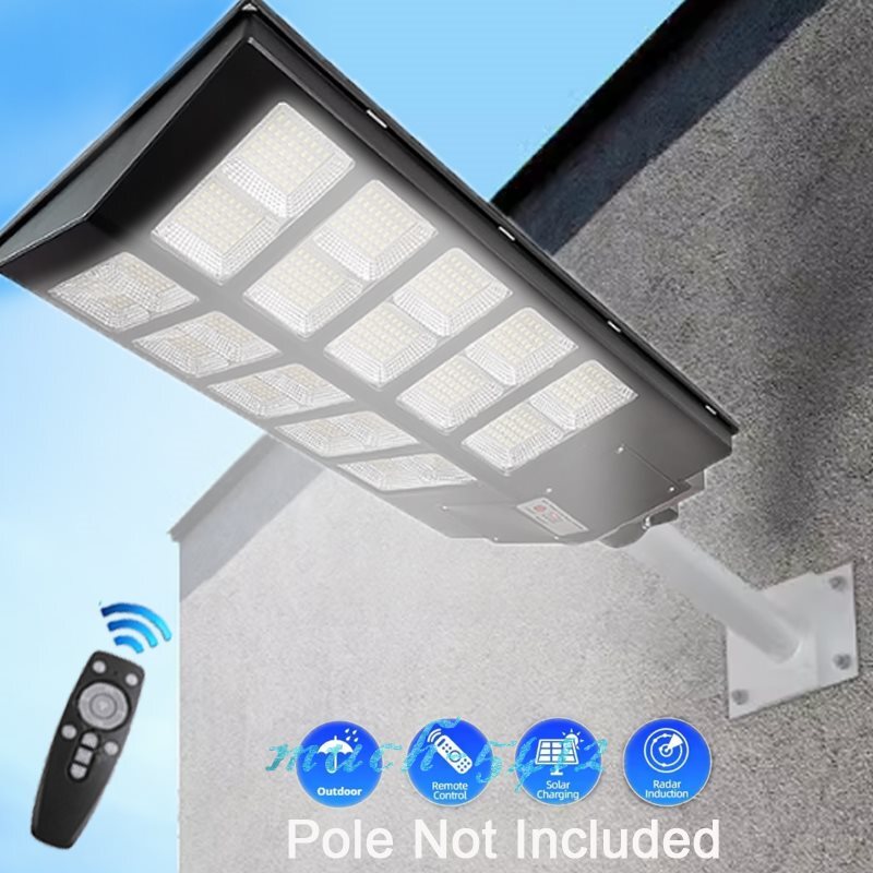 800LED 1000W Commercial Super Large Solar Street Lights Outdoor Dusk to Dawn Solar Lights LED Solar Powered Motion Sensor Human body sensing & radar sensing Wall Lamp Street lamp IP67 Waterproof with Remote Control BLACK 1000W 800 Lamp beads Feature: -Solar power& environmental protection: Solar panels convert solar energy into electricity.NO wires,easy to install.Big capacity battery can save up to 100% electricity. -Ip67 Waterproof & Anti-corrosion : Made of good quality durable ABS material and can be used in outdoor for any bad weather conditions. The working temperature is -50℉-140℉. - Light Control &Remote Control: LED solar flood light will automatically turn on at dusk and turn off at dawn.Remote control functions including 2h/3h/5h/6h/8h setting ,25%/75%/50%/100% brightness. -Super Bright: Imported LED lamp bead light source.Two-way lamp beads wide-angle lighting The brightness is several times higher than traditional light bulbs. -Human body sensing & radar sensing: The light is bright when there are people, and the light is slightly bright when there are no people -Safe to use: Built-in protection circuit for long life. -Multiple installation methods: Pole-mounted and wall-mounted which can be installed on light poles/walls/small diameter cylinders . -Widely Application: Outdoor wall or pole in Plaza, Park, Garden, Courtyard, Street, Walkway, Pathway,Campus, Farm, Perimeter Security and etc. Specification : Wattage: 1000W Fully charged lighting: 20 hours Solar panel: 6V/30W Battery capacity: 3.2V 30AH Product function: radar + light control + remote control Lamp body size: (H*W*L)68*8.5*35cm/26.77*3.35*13.78inch Lamp beads: 800 Irradiation area: 250 square meters Installation height: 4-6m Material: ABS engineering plastic PC cover Waterproof :IP67 Remote control :Normal light or induction mode Remote control battery type: 2*AAA (not included) Life: 100000 (h) Installation Instructions: 1. Please link the shell and light pole of the street light with which is installed on the shell with hex key. 2. Please bore the hole into the wall. 3 .Please tighten the nut with a hex wrench and secure it Package including: Solar Street Lights *1 Remote control*1 Payment Delivery details Terms of sales About us Contact us Payment Payments: Paypal, Google Pay, Visa, Master Card, Amerian Express, Discover. Delivery details All items are shipped from US warehouse located at NJ . We ship to your eBay or Paypal address. Please make sure your eBay or Paypal address is correct before you pay. Terms of sales Free return About us Pls contact our customer service firstly if have any problems , we will help to solve the issue, and could offer free return service for full refund or free replacement after confirming. You can buy from us with confidence Contact us If have any problems, please feel free to contact us.
