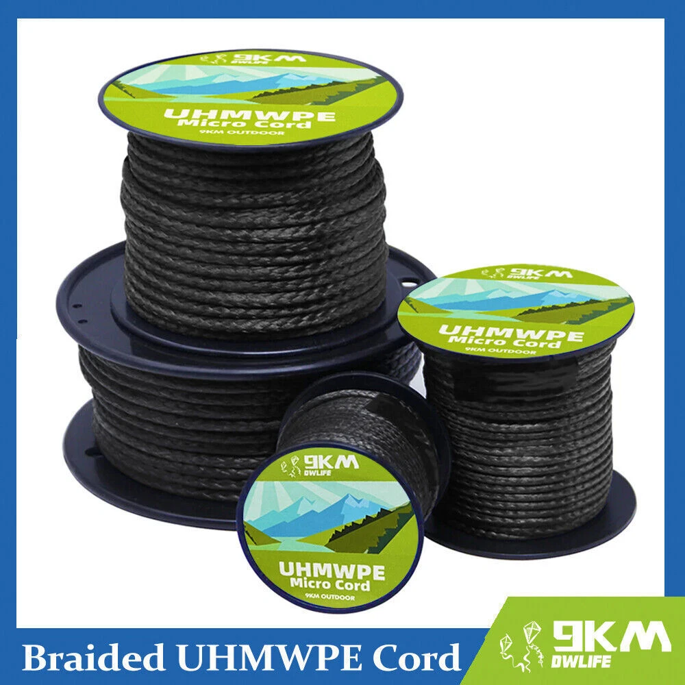 High Strength 1000lb-2000lb Braided UHMWPE Micro Cord 100% UHMWPE Micro Cord 100% UHMWPE Micro Cord with endless uses for outdoor applications. 2mm~3mm diameter, hollow braid, yielding high strength, with self-lubricating smooth surface and unbeatable abrasion resistance, UHMWPE Micro Cords excels most as whipping twine to bind rope ends and spliced eyes for extra security; durable stitching cord for webbings; tough sewing thread and repair cord for heavy canvas, tarps, backpacks, load-bearing equipment; Emergency fishing line and utility cords outdoors. Best cords for anywhere extra protection from abrasion is required. UHMWPE is highly resistant to abrasion and wears, largely extending the abrading period when compared to nylon and polyester. Go for UHMWPE micro cords as whipping twine or repair cords when your ropes or load-bearing equipment tend to abrade quickly due to intense rubs against woods and rocks. GO LIGHTER! 15 times stronger than steel wire on strength to weight basis, made of 100% UHMWPE (also known as different trade names, Dyneema, Spectra by different manufacturers), the micro cords are much less bulky and lighter than most other utility cords while delivering higher strength. The exceptional string helps you GO LIGHTER outdoors without compromising strength and performance. UV RESISTANT! UHMWPE retains its super performance after long-term exposure to UV. Extremely high resistance to UV, enhanced by PU coating over the cords, superior to Aramid (Kevlar, Technora, Twaron) and to most high-tech fibers. Qualified for most outdoor applications, especially as the best repair cords for marine uses. Kite Line The most loved stunt kite line as it is, with <1% stretch at working load, UHMWPE micro cords are of the least stretch for receiving quick responses from kites and resist deformation under load for longer service life. Property of zero water absorption helps survive its unbeatable quality through the damp environment (kite flying at the beach). Self-lubricating smooth surface lets cord less prone to tangle, and makes sewing and stitching a snap. SPECIFICATION Material: 100% UHMWPE Fiber (Ultra High Weight Molecular Polyethylene) UHMWPE is known as different trade names, like dyneema, spectra by different manufacturers Elongation at break: 4.8% Fusion point: 266~277 °F / 130~136 °C safe working temperature is below 176 °F / 80 °C Packaging: On Spool Recommended safe working strength(WLL): 70% of its original strength. Approximately ±2~3% deviation exists in measurement.