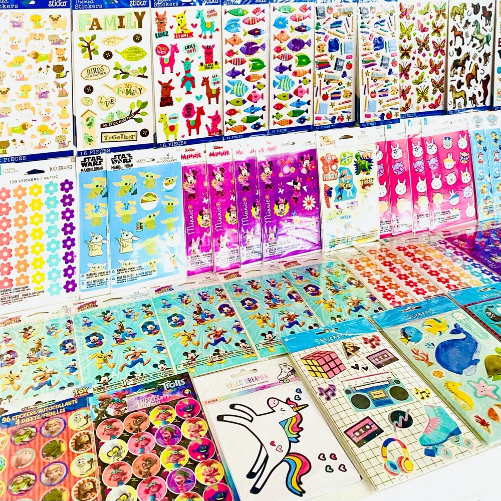All stickers are BRAND NEW | Still in their original packaging! HUGE Mixed Sticker Lot | The Ultimate Kit | Qty. 1001+ Stickers | High Quality Only! Fun Assortment of Puffy, Scrapbook, Cartoons, Bubble, Pop Up Stickers Packs For Everyone! The Pack will include 1001+ Stickers overall! I have included a large variety of pictures of the assortment available. The pictures give you an idea of what you will be receiving. Please Note: You will not receive everything pictured. Please contact me with any special requests. Perfect Gifts for Kids & all Occasions: Can be given as a gift for kids, girls, boys, toddlers, teens, students, friends, and classmates, they will love it!