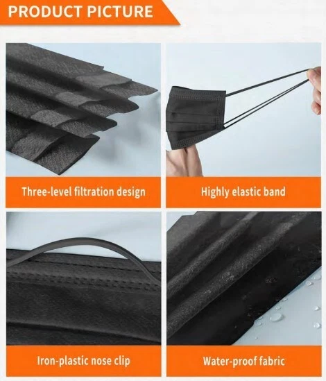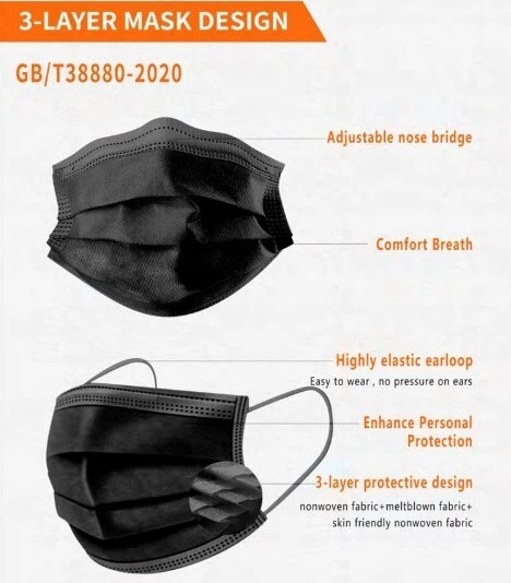100/200/500/1000/1950 PCS Black Inside & Outside Disposable Face Mask 3Ply Ear Loop Mask, multiple protection Provide option to buy with mask brackets, more comfortable breathing experience. Receive mask and bracket together! US Seller, free with USPS service. Ship out next day! The comfortable elastic ear loop and 3 layer protection protect you from dust, droplets, air pollution. The outer protective layer will prevent dust, odors and large particles. The key middle melt blown layer can effectively filter out small particles. F inal internal skin care layer is a natural anti-allergic filter. 100 Pcs for 2 Boxes: good for 1-2 people daily use. 200 Pcs for 4 Boxes: good for 2-3 people daily use. 500 Pcs for 10 Boxes: good for 3-5 people daily use. 1000 Pcs for 20 Boxes: good for 6-10 people daily use. 1950 Pcs for 39 Boxes: good for more than 20 people daily use. *The mask bracket is included in packages, or it's available for separate purchase.