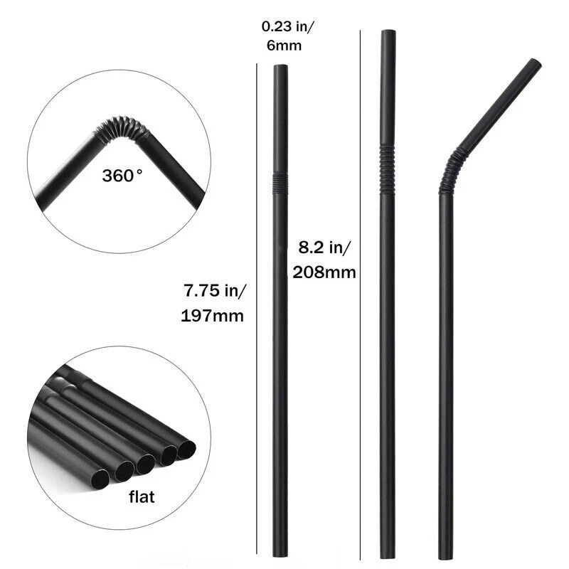 Product Description Black Straws Flexible Drinking Straws Birthday wedding Party Description: The disposable straw is made of food-grade PP material, non-toxic, tasteless, non-toxic, tasteless, BPA-free, safe and environmentally friendly. Flexible Bendy Black Recyclable Suitable for both children and adults. Suitable for wedding, party, cocktail, household and so on In daily life, I often drink beverages, but drinking directly at the mouth of the bottle is not only unsanitary, but also inconvenient, and it is easy to stain clothes. This is our colour habit that can help you and make your life More convenient. Specifications: Quantity:100 PCS / 200PCS / 500 Pcs / 1000pcs Colour: Black Length: approx. 21cm Diameter: approx. 6mm Package included: 100-5000pcs Straws (1 packs of 100pcs straws)