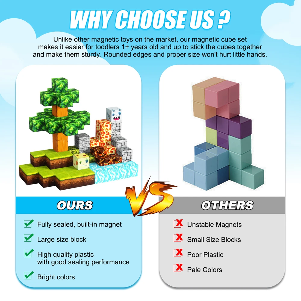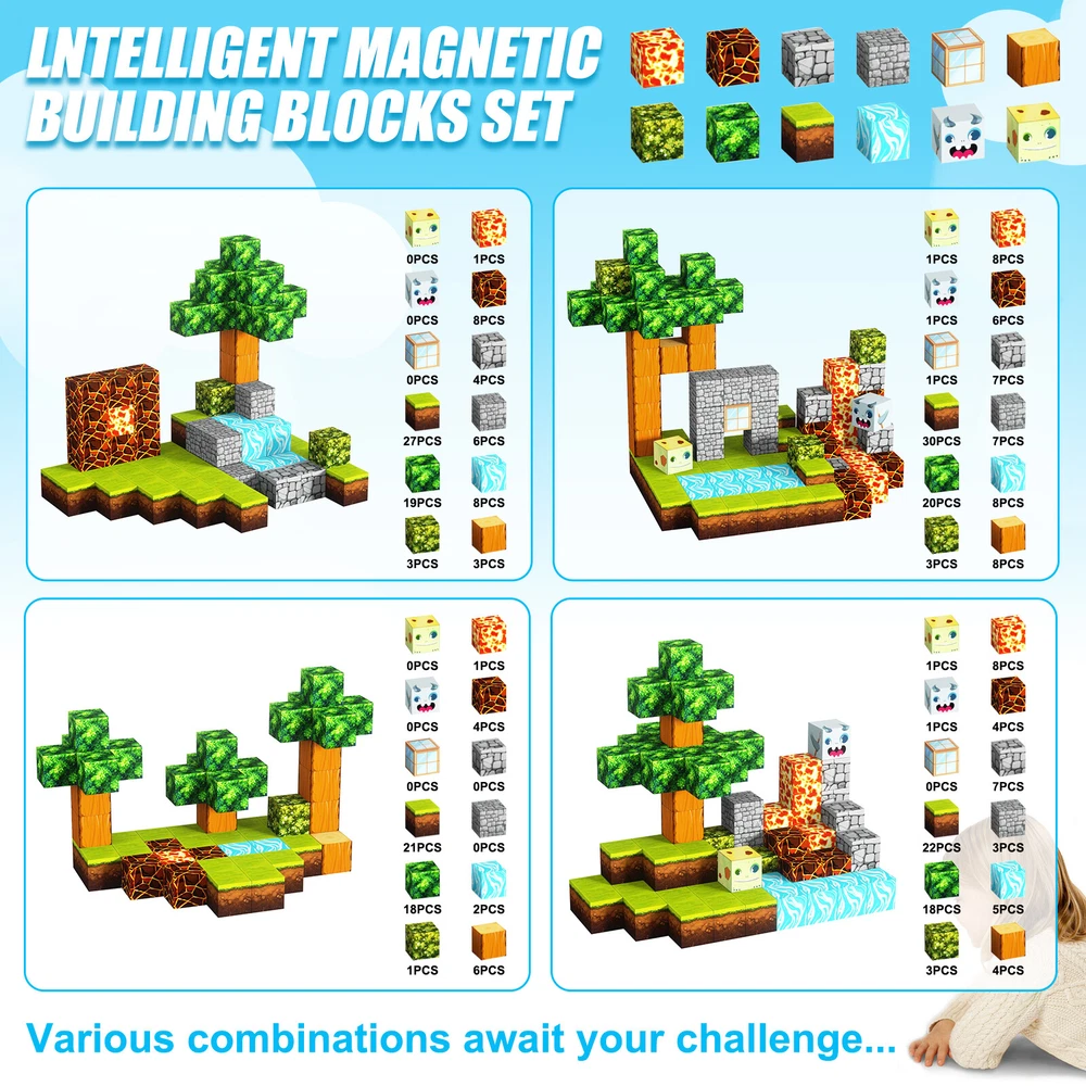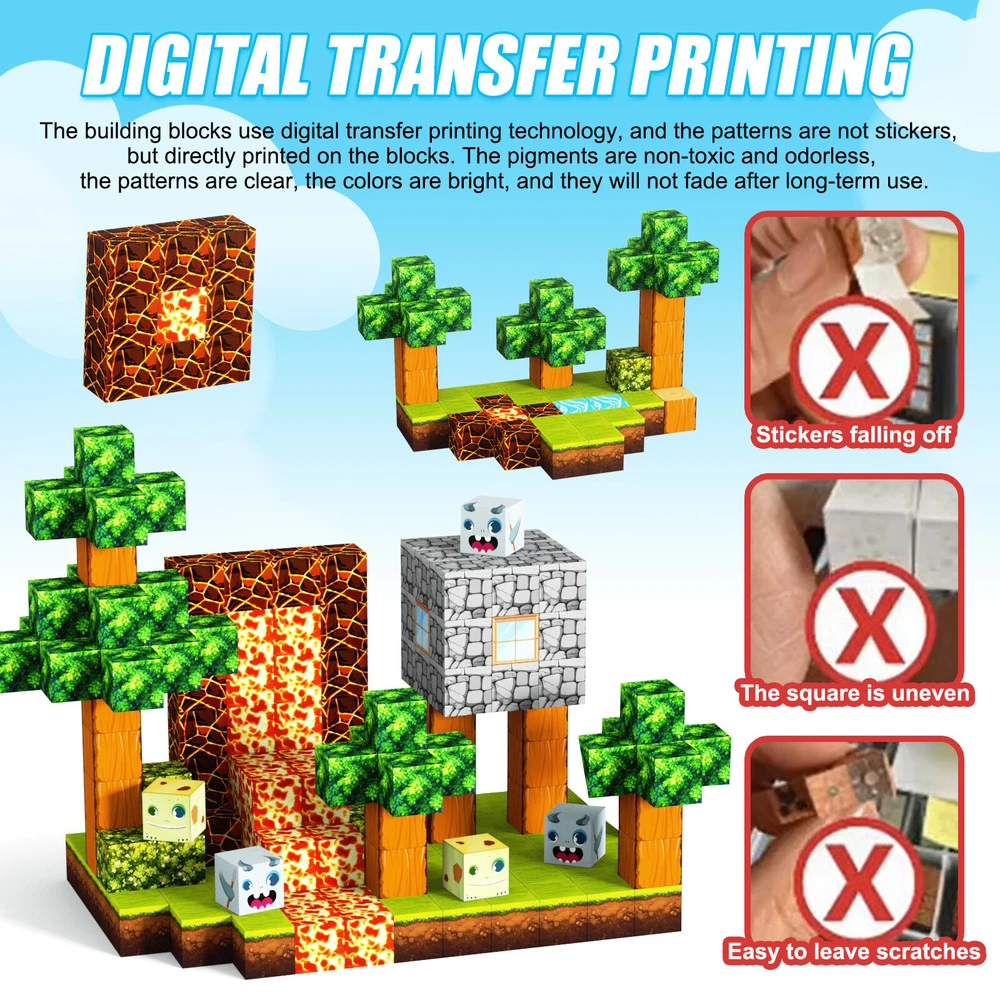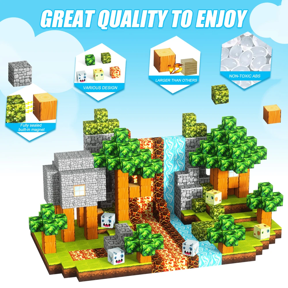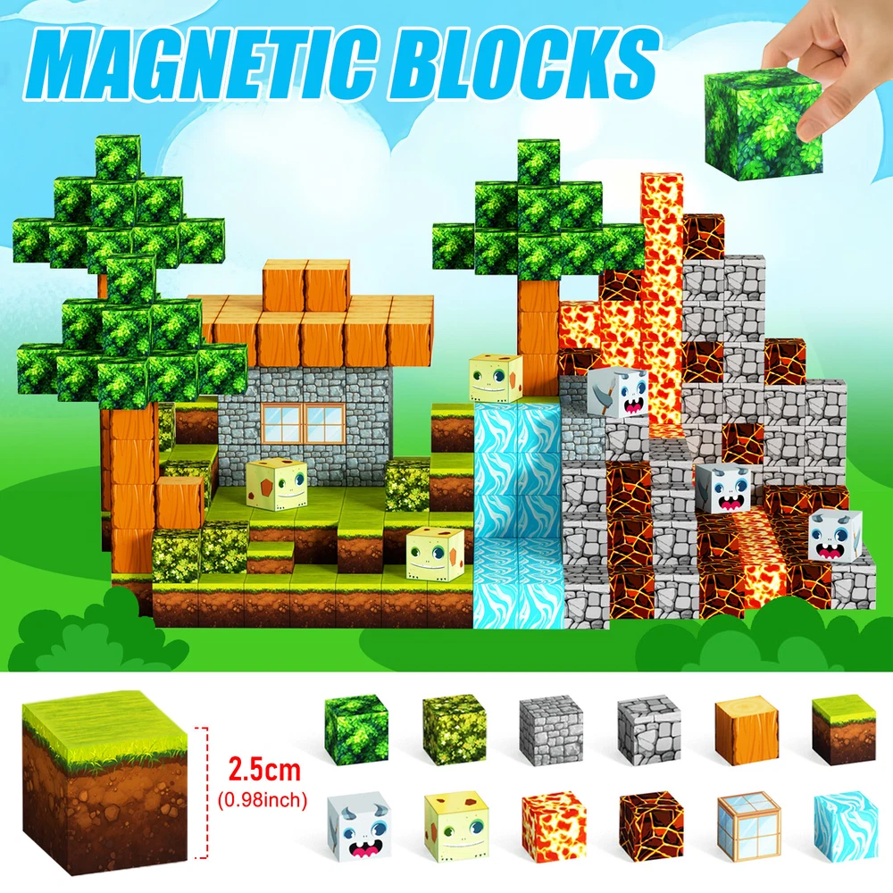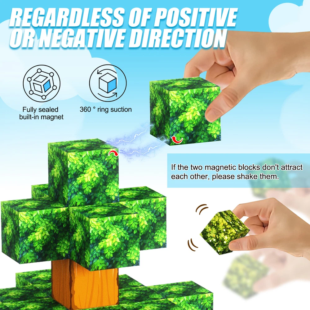 1-10pcs Finger Flush Pulls for Closet Pocket Sliding Barn Door Handle Set 8.13 USD Free shipping Smart Glasses Bluetooth Call Headset Wireless Music Audio Polarized Sunglasses 24.23 USD Free shipping Translation Earbuds-Multi Languages Instant Translate Smart Bluetooth Headphones 26.43 USD Free shipping Smart Ring Men Women Heart Rate & Blood Oxygen Monitor IP68 Fitness Tracker Gold 24.04 USD Free shipping Anti Theft Doorbell Mount No Drill Doorbell Camera Mount for Blink Apartment 15.44 USD Free shipping Wireless Remote Control Magnetic Sensor Door Window Home Security Alarm 23.34 USD Free shipping Universal Vacuum Cleaner Hose Extra Long Pipe Tube 32/38mm Inner Diameter 34.29 USD Free shipping For Samsung Galaxy S23 Ultra 5G S Pen Stylus Black SPen Replacement SM-S918 13.17 USD Free shipping 1500m Dog Training Collar Dog Shock Collar Walkie Talkies Anti-Bark Talk to Dog 26.49 USD Free shipping 435Pcs Glow In The Dark Luminous Stars Moon Planet Space Kid Wall Stickers Decal 10.8 USD Free shipping Product Description Features: -BUILD A FOREST SET: Get ready to experience the fun of magnetic toys with this new magnetic cube set! Build a forest collection, add the character cubes from our set, or your other toys, and start your forest adventure with role-playing fun and dress-up toy fun. Magnetic blocks open up a fantastic world of possibilities, from simple to challenging constructions (multiple matching sets required). Let your children's imagination run wild with our magnetic open-ended playsets! -Educational and fun: building and block toys inspire a wide range of skills in children. Building, rotating, destroying and rebuilding with magnetic blocks helps improve children's creative thinking, concetration and patience, cooperation, spatial and motor skills. The included creativity booklet guides and inspires children to explore the magnetic fantasy world. It's a fun solo activity that can also be done with friends and is a great alternative to screen time. -Supersensory Magnetic Toys for Kids: The 100 Piece Magnetic World Set combines UV technology and magnetic science to make your construction art more vivid and realistic than simple solid-colored cubes, offering rich patterns. More cubes, more possibilities to unleash your child's creativity. Kids will get everything to decorate their little castle or build a forest parking lot for their dolls to park their toy cars! -TODDLER AND BEGINNER TOYS MAGNETIC SET: Unlike other magnetic toys on the market, our magnetic cube set makes it easier for toddlers 1+ years old and up to stick the cubes together and make them sturdy. Rounded edges and proper size won't hurt little hands. Perfect STEM toys can help kids get deeper into the world of structures and learn about magnetism. Recommended toy gifts for toddlers and children ages 1-12 years old -EXCELLENT SCIENCE GIFT GIVING IDEAS: The magnetic cube is fun because it will keep kids of all ages busy for years to come. It is a great irritating kids toy for classrooms, toddlers, preschoolers, teens 1 2 3 4 5 6+ boys and girls. Perfect educational gift for birthdays, Christmas, Children's Day, STEM and school events. Attention: - Our initial set is 100pcs, and our main picture is divided into basic sets and advanced quantities, which vary from dozens to hundreds of building blocks, please pay attention to the scale and quantity of building, and purchase according to demand. - We put magnetic control to some challenge, develop careful observation, find building skills, and build high order patterns (watch our tutorial video). The difficulty of more than 300pcs big picture ☆☆☆☆ -☆☆☆☆☆ finally challenge it! Specification: -Material: high quality magnet/high quality plastic -Color: As shown in the picture -Quantity: total 100pcs -Size: single cube size 2.5cm/1inch Package Includes: -1-7x 100pcs magnetic blocks (12 patterns) -1-7x Instructions