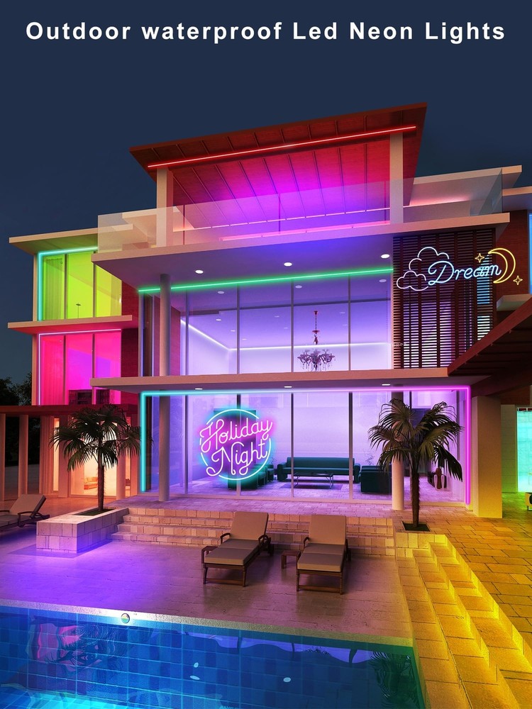 100Ft LED Neon Rope Lights with App and Remote Control, IP65 Waterproof Neon Str 【Ultra-Bright RGB Light Strip】Our RGB LED light strip features 2520 LED beads with a side brightness design and a 120-degree projection design that make the LED light strip brighter. It provides a larger illumination coverage area with even light distribution, and the brightness is adjustable. You can use an application or a remote control to set the color of the light strip, with over 16 million colors to choose from, allowing you to DIY your favorite colors 【Music Sync Ambience RGB Light Strip】Our flexible neon light strips can synchronize with music, featuring a built-in microphone that can sense music or other sounds. This creates a perfect lighting atmosphere for you, enhancing your gaming setup, living room, or bedroom, allowing you to create the perfect mood and atmosphere for any occasion 【Smart APP Control & IR Remote Control】Our neon smart LED strip lights come with a wide range of features that make them easy to use and control. You can choose the pre-set color or mode through the cell phone APP or the remote control, and you can also DIY your favorite color and modes. Remote control it freely in a straight line up to a range of 5 meters. It also has a timing function that allows you to schedule the lights, making it a wake-up light 【Waterproof & Safe】Our neon strip light is not only suitable for indoor use, but also perfect for outdoor lighting with an IP65 waterproof rating (NOTE: Controller is not waterproof). The neon LED strips are powered by 24V low voltage, and the shell is resistant to high temperature. Perfect choice for indoor or outdoor use 【Wide Application】Our flexible neon strips can be easily bent into various patterns. Just use the screws and snaps (package included) to fix the light strip. Due to their high brightness, multifunctionality, and safety, they are the perfect choice for bedroom lighting, party decor, hallway decoration, living room, game room, staircase, outdoor bar, window, and they are also suitable for Christmas, Halloween, and other holidays Shipping We offer FREE shipping on all orders! We ship within Three business days of payment, usually sooner. We use a selection of shipping services such as UPS, FedEx, USPS etc. We only ship to the lower 48 states, no APO/FPO addresses or PO Boxes allowed. Local pickups and combined shipping options are not provided at this time. Return You can return a product for up to 30 days from the date you purchased it. Any product you return must be in the same condition you received it and in the original packaging. Please keep the receipt. Payment We accept payment by any of the following methods: PayPal Please pay as soon as possible after winning an auction, as that will allow us to post your item to you sooner! Feedback Customer satisfaction is very important to us. If you have any problem with your order, please contact us and we will do our best to make you satisfied. Contact Us If you have any queries, please contact us via ebay. We usually respond within 24 hours on weekdays. Please visit our eBay store to check out other items for sale! Thank you for shopping at our store.