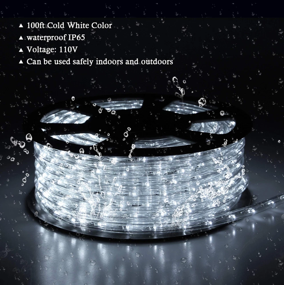 Description: Our LED rope lights(No Remote) are great for decorating stairways, railings, ceilings, desks, windows, boats, clubs, parties, galleries and special holidays. This LED rope lights are encased in highly flexible PVC tubing . Feature Suitable for decorating stairways, railings, ceilings, desks, windows, boats, clubs, parties, galleries and special holiday The structure is simple, clear, convenient installation, cost-effective Energy-saving and longer-life Crystal clear pvc tubing for durable use and brighter Easily to bend into any shape Light healthy, no radiation, no pollution Protection of , DC power drive, avoid frequent flash can cause eye damage High flexibility, temperature sustainability, and uv resistance 100FT Specifications: Color: Warn White/ Cold White/ Blue/ Multicolor /Red Total Length: 100 Ft LED Bulbs:1080 Tube Diameter: Φ10mm Beam Angle: 45° LED Quantity:36 LEDS/m Package included: 1 x User Manual 1 x 100 Foot Flexible LED Light Rope 2 x Power Cord With Connector 2 x Middle connectors 2x End Caps 30x Clips Please Kindly Note: only LED strips are waterproof and connectors are non-waterproof. Safe and reliable: This led rope lights has high-quality copper wire, which makes it have excellent electrical conductivity, provides stable lighting and guarantees the life of the LED.(No Remote ) Outdoor rope lights waterproof(No Remote ): The deck lights cord has excellent waterproofness, protection IP65, very suitable for long-term indoor or outdoor use (note that the plug is not waterproof). Easy to install and cut off: The rope lighting device can be directly plugged into a household power socket. And it can be cut off between each LED without damaging the remaining light bars. It can also be extended with a connector (with instructions for use). Suitable for various occasions: any shape that can meet your indoor and outdoor decoration needs. It is suitable for providing decorative lighting for buildings, windows, sidewalks, terraces, gardens, fences, porches, restaurants, clubs, bars, boats, stairs, railings, parties and holidays. [After-sales service]-If you have any questions about the rope lights, please us, we will provide you with the best solution.