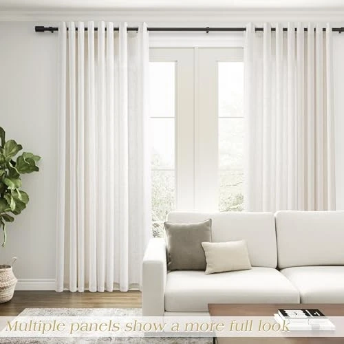 Return Policy Fast Delivery Trusted seller Extra Wide 100 inch Linen Curtains for Living Room Divider Light Filtering Semi Sheer Patio Curtains for Sliding Door Natural Coastal Decor Sunroom Floor to Ceiling Window Curtain Panels 100" Wide Product Description Natural Linen Textured:The linen curtains adopt linen, cotton and polyester blended fabric, these airy fabric features a soft drape and subtle striations giving it an organic look that complements a variety of interior styles. Sunlight Filtering and Privacy Protection: Semi sheer curtains can filter a part of harsh sunlight and not see through. It's perfect for diffusing light beautifully into your space, gives a very soft light filtering look. The extra wide curtains can also be used as room divider curtains to provide you with better privacy protection. Ready Made:Package includes 1 flax linen curtain panel,measures 100" wide X 84" long. Each panel has 16 grommets with 1.6" inside diameter. Friendly for set up and easy for everyday use. Wide Usage: Solid linen curtains are a versatile choice that can work in a variety of settings,from modern apartments to traditional homes. It has a casual yet elegant and natural look. Widely used in the patio glass door, bedroom, living room, office, farmhouse, closet, studio, kids room. Easy Care: Hand washable, bleach-free, low temperature drying. Ensure the surface of the buttonholes is dry to prevent rusting, and if necessary, iron with warm water. If t are any problems with curtains,please feel free to contact us. Shipping Returns Payment Shipping Shipping is FREE to all addresses other than APO/PO boxes in the lower 48 states. All our stock ships from US-based warehouses. Shipped via USPS or UPS (depending on location and package weight) Unless stated otherwise, all orders will ship within 24-72 hours of your payment being processed. Check our feedback to see the great reviews of FAST shipping we offer. Returns Seller does not accept returns Payment We currently accept payment via eBay managed payments only. Once payment is cleared, we will dispatch your shipment within 1-3 business days. Please refer to the "Shipping" tab for more information regarding shipping speed to your destination.