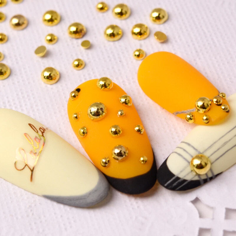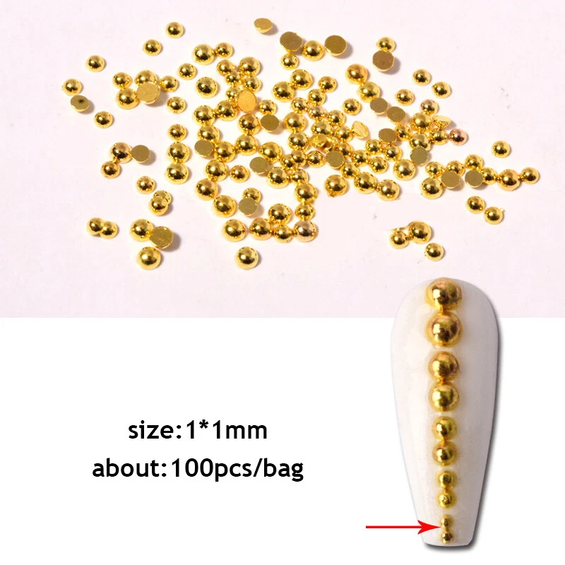 Color: Gold,Silver Shape:Semicircle Quantity:100pcs/bag Size:1mm,2mm,3mm Type: Nail Art DIY Charms Decorations Usage: Nails, Bags, Shoes, Cell Phone, Box, ect. Package: 1 bag 100pcs Metallic Beads Nail Art Decorations