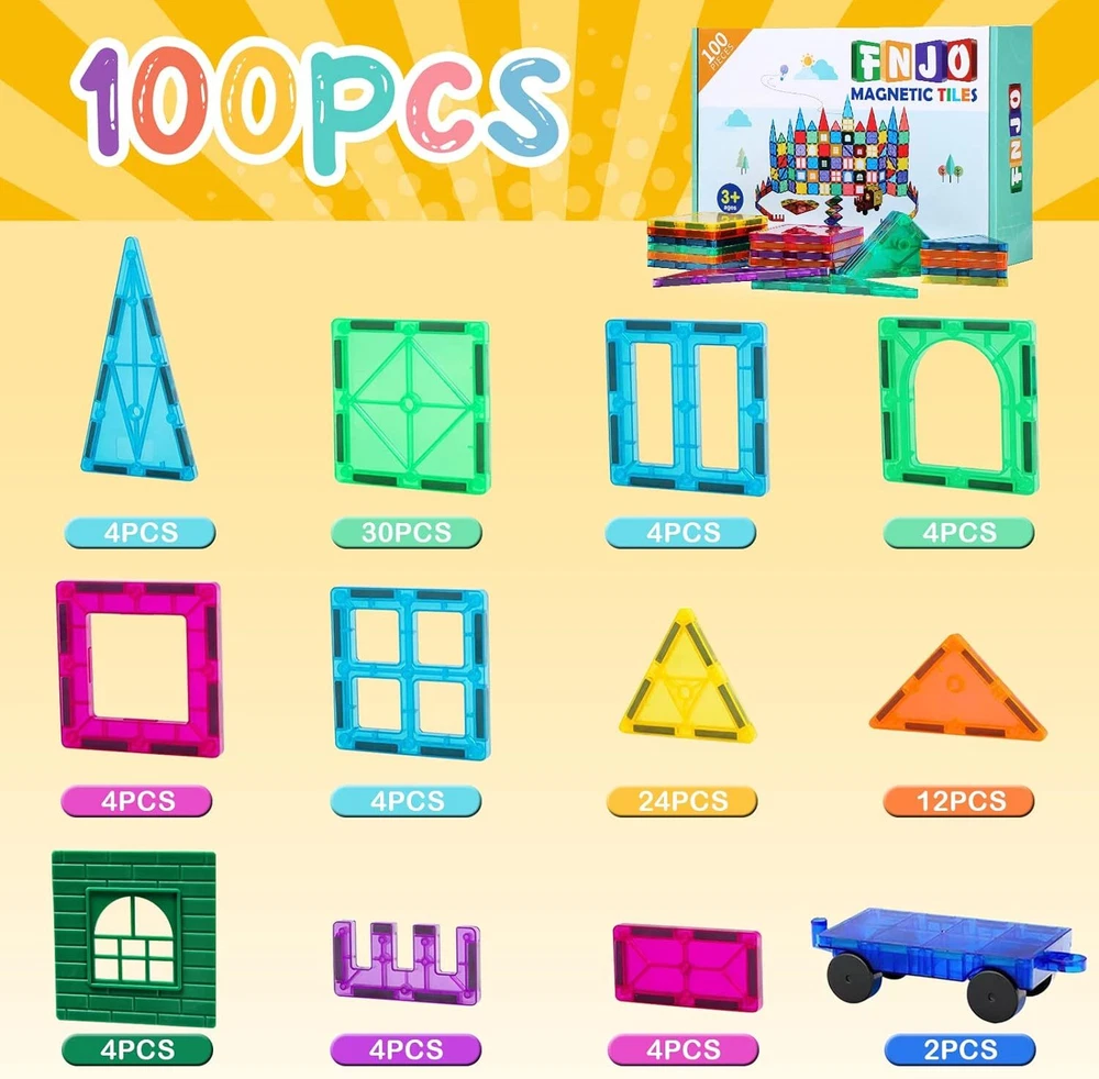 Product Description Magnetic Tiles, 100PCS Building Blocks, Magnets Building Set, STEM Construction Stacking Toy Gift for Kids 3+ Boys and Girls Daycare Centers Kindergarden Total:100PCS(94 basic shapes,2 car bases, plus 4 click-ins which are used for the hollow square tiles), with beautiful box, and an idea book, compatible with most of other branded tiles. Wonderful magnetic building tiles set for kids. Material:made of ABS plastic, no smell. Adopting ultrasonic welding technology, ASTM-approved STEM toy, safe for kids to play, colorful magnetic building tiles, smooth surface like ice. High transparency,round edges, not easy to scratch. Learning while playing, educational and inspirational, start from simple 2D patterns to 3D modeling. Unlimited Possibilities, just don't limit yourself, build whatever you want(castles, houses, the sun, flowers, animals, rockets and so on),almost suitable for all ages,free you of the baby-siting, away kids from video games, and be more focused. The more tiles, the more fun you will get, also work for Multi-players, enhance your relationship with your kids by playing together, STEM toy for class, Kindergartens,daycare centers, help kids master construction skills, color recognition, sorting skills, stacking skills. Perfect gift for boys and girls,your kids/grand kids will definitely love it. We believe customer first. If there is any quality problem, please don't worry,we will take full responsibility and give you satisfying solutions. About Us We are a reputable seller with many years of experience selling on eBay. Our goal is to provide high-quality products and excellent customer service. Payment 1.We accept PayPal only. 2.All major credit cards are accepted through secure payment processor PayPal. 3.Payment must be received within 7 business days of auction closing. 4.We ship to your eBay or Paypal address. Please make sure your eBay and Paypal address is correct before you pay. Feedback will be left automatically after we receive your feedback. Please contact us before leaving a Negative feedback or Neutral feedback. We would try our best to help you solving any problem. Shipping Items will be shipped within 1-3 business days when we received payment. (Orders are not processed on weekends & holidays) Tracking information will be sent once item is shipped. Delivery time depends on destination and other factors Item is shipped to ebay address. Leaving correct address can minimize delay. For international shipping and shipping to Guam, Hawaii and Alaska, Please contact us before placing the order. International buyers please note: Import duties, taxes and charges are not included in the item price or shipping charges. These charges are buyer’s responsibility. We will try our best to reduce the risk of the custom duties. Local pick-up is unavailable at the moment. Returns For any issues with Defects, Return, Item Exchange request, please contact us first and send us a message first before opening any type of case or request. We devote ourselves making EVERY CUSTOMER in 100% Satisfactory and resolve any problem. We highly value and appreciate your business. Thank you. No returns will be accepted without an RMA number. Please contact us for the RMA number. Return is acceptable within 30 days of delivery. Return for replacement or money back is optional. Returned items must be in the brand new, unaltered and resalable condition. Seller is not responsible for any labor cost, expense in a dealer store, or damage due to wrong installation. Contact Us We reply any email messages within 1 business / working days(off-duty at weekend). If you do not get a response from us, then please check your junk or spam mailbox. Our Business hours: Mon-Fri 9:00-18:00, UTC/GMT +8 hour s . Please contact us either by clicking "contact seller" in the "purchase history" section or simply click "ask a question" at the bottom of this page. If you are unsatisfied with our item or service, please contact us before leaving any feedback. We are committed to resolve all issues in a friendly and satisfactory manner. To provide you with better service, please provide the following information in your email: Your ebay ID Order problem, order number For product questions, the eBay article number, the product URL or the product SKU Unfortunately, the eBay guidelines do not allow us to provide a phone number. But if you'd rather call please send us an email.