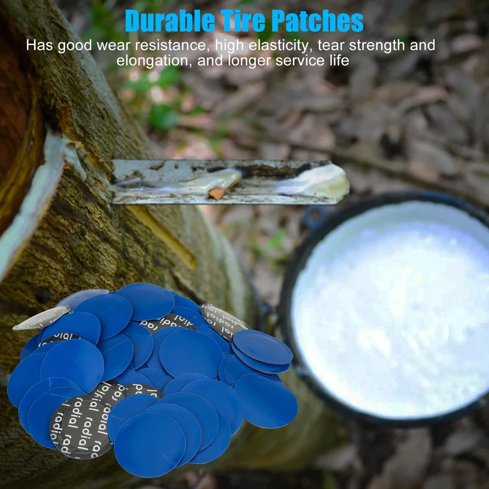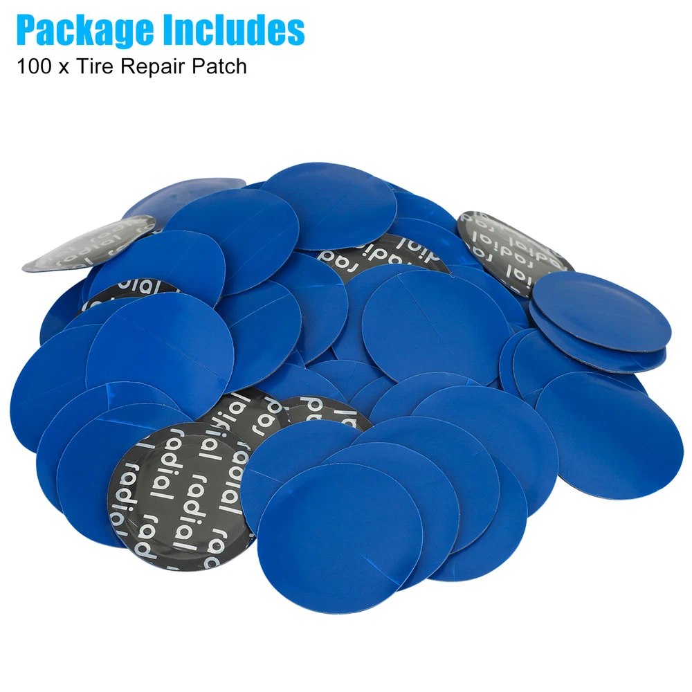 Featu re: Made of high-quality natural rubber material, excellent sealing performance. Has good wear resistance, high elasticity, tear strength and elongation, and longer service life. The tire repair patch has a high viscosity and strong adhesion for quickly and effectively repairing the puncture of the tire. Can be stored for a long time, with no air leaks, and efficient repair. Lightweight, slim, easy to carry, protect your car tires, and drive safely. 100 pieces in each bag are very economical and practical. It is easy to use, but we highly recommend using a professional. Specification Material:Natural Rubber Size:45*45mm/1.8*1.8inch Fitment:Universal Package Included 100 x Tire Repair Patch