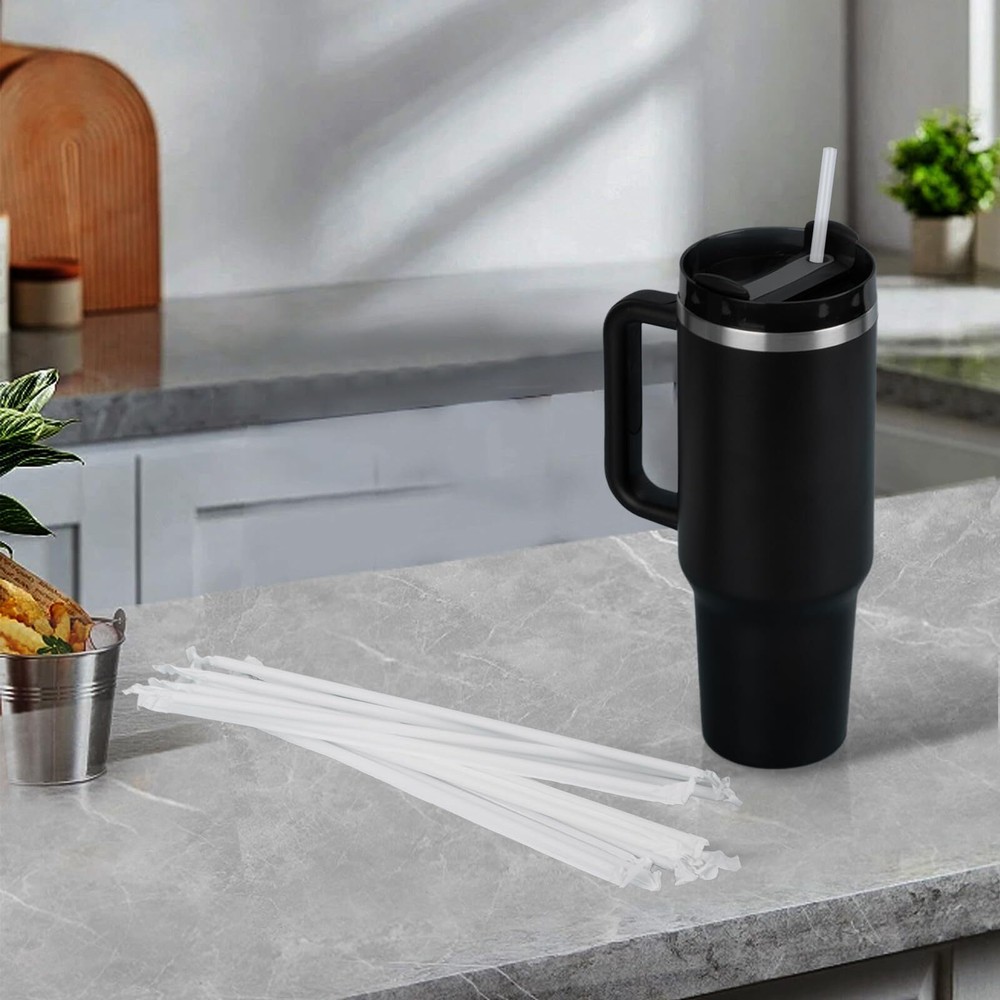These long disposable straws are designed for 40 oz tumblers, including Stanley cups, offering a perfect fit. Each straw is individually wrapped for hygiene, and the extra long size ensures compatibility with 30 oz and 40 oz tumblers. Made from durable material, they’re perfect for events, providing both strength and convenience for large groups. Perfect Fit for Large Tumblers – These long disposable straws are designed to perfectly fit 40 oz tumblers, including Stanley cups. Our extra long straws disposable are ideal as disposable straws for 40 oz tumbler, providing a hassle-free sipping experience. Individually Wrapped for Hygiene – Each of these long straws disposable is individually wrapped, ensuring cleanliness and convenience for use. These disposable straws for Stanley 40 oz tumbler are perfect for both home and on-the-go usage, keeping them sanitary. Extra Long Straws for Versatile Use – Our extra long disposable straws are compatible with a range of tumbler sizes, including 30 oz and 40 oz. These tall straws disposable are great for any occasion, whether it’s for your Stanley tumbler or other large cups. Durable and Easy to Use – These Stanley disposable straws are made from high-quality, durable material, ensuring they last throughout your drink. Perfect for events, these disposable Stanley cup straws offer both strength and flexibility. Convenient for Any Event – Whether it’s a party, office, or vendor event, these disposable tumbler straws are a practical choice. The long disposable straws for 40 oz tumbler provide a great solution for serving beverages to large groups efficiently.