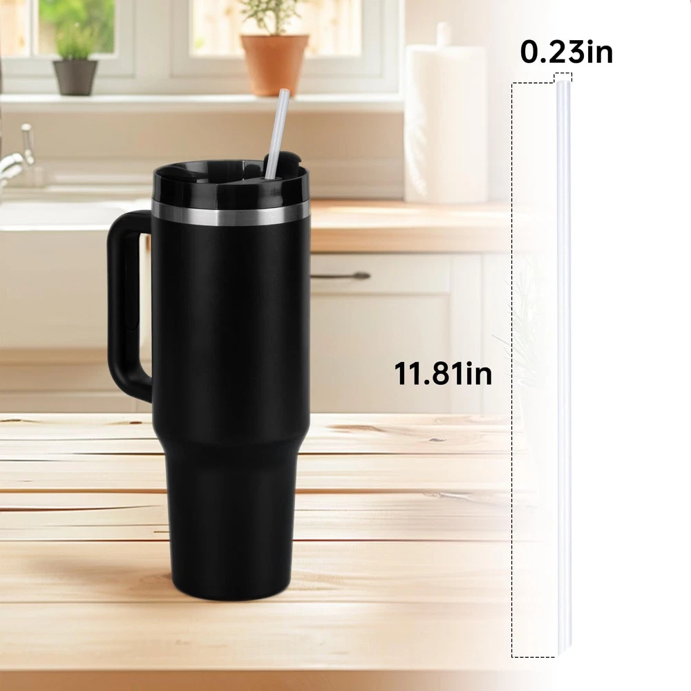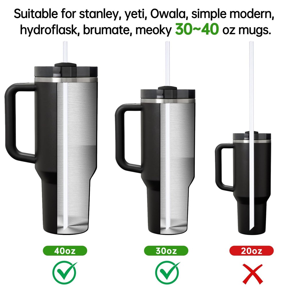 These extra-long straws are a game-changer for my 40 oz tumbler—no more struggling with short ones! They fit perfectly in my Stanley cup and stay sturdy even with thick smoothies. Love that each straw comes individually wrapped, making them super hygienic for parties or travel. The durable material holds up well, and the length works great for both 30 oz and 40 oz cups. Super convenient for gatherings or daily use—highly recommend!