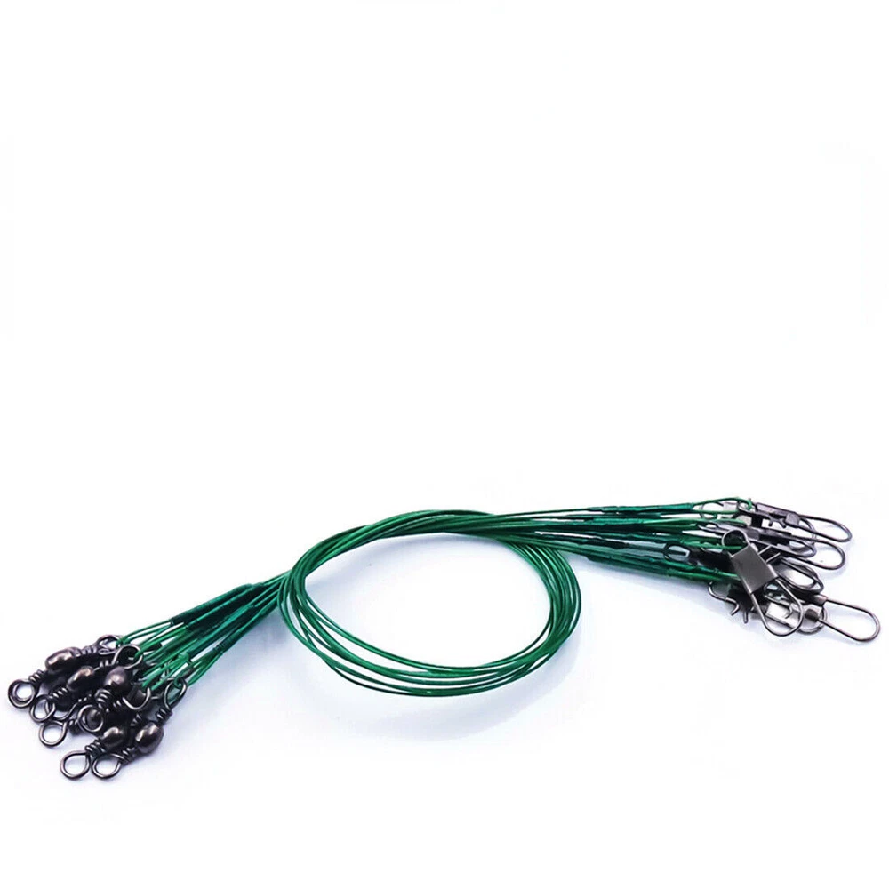 Steel fishing leaders,Durable and tough enough for fishes with sharp teeth.Apply to a variety of baits or lures.Work as steel leader fishing, fishing leaders saltwater, fishing rigs saltwater rig, saltwater fishing tackle kit leaders. SIZE--Length Approx 15cm / 5.9", 20cm / 7.9" 25cm / 9.8" and 30cm /11.8".Perfect fishing wire leader, attach your fishing hooks with leader, steel leaders fishing saltwater, steel fishing leaders,steel leader line fishing,wire leaders for fishing, steel leader, muskie fishing gear, bass hooks fish leade freshwater fishing tackle. TMATERL--You use barrel fishing swivels and swivels fishing tackle these steel leaders will let you catch your desired fish without trouble. Great fish leader freshwater fishing tackle for fishing and catfish rigs. SPECAIL DESIGN--Steel fishing line leader,Work great as fishing leader variety pack, ice fishing leader line, hi lo rig saltwater fishing, fishing steel wire for catfishing hooks, pike leader, steel leader line,leader fishing line swivel Feature a tough barrel swivel at one end, and an interlok snap at the other. HIGH QUALITY--Crimps are very smooth. It can be easily connected to the hook and provides top quality abrasion resistance,in Saltwater/Freshwater/River/Lake.