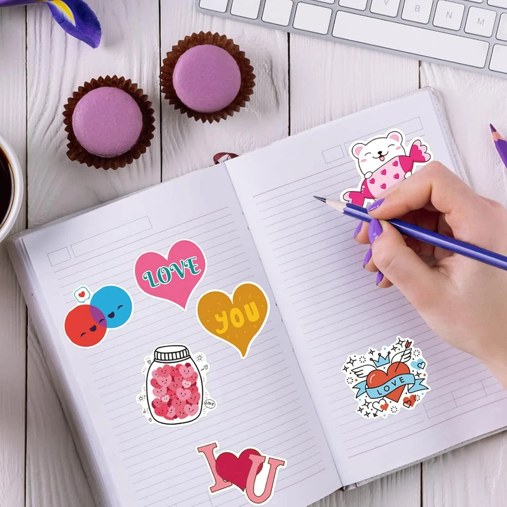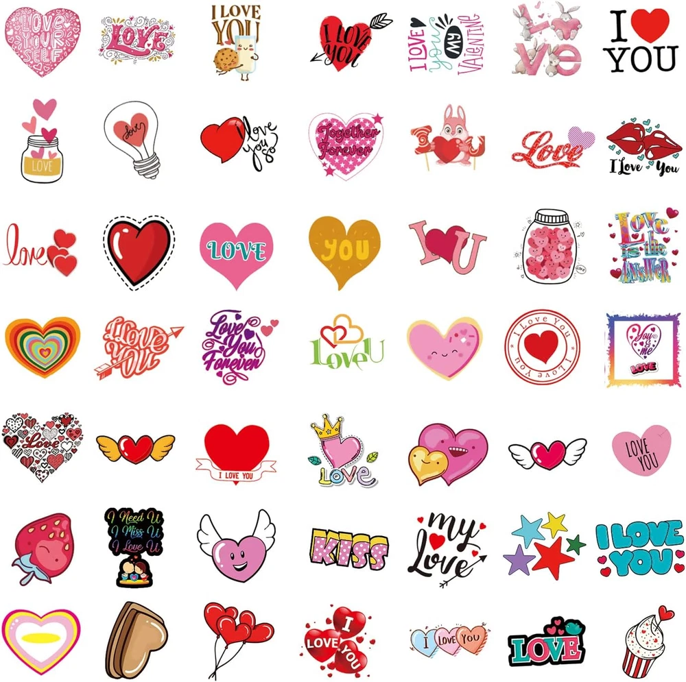 💌 【Quantity & Style】 100PCS I love you vinyl stickers with different styles and no duplicates, enough to decorate various items and add a strong atmosphere to your Valentine's Day. 💖 【Excellent Material】 Personalized graffiti stickers are made of high quality vinyl material, safe and non-toxic, strong adhesive, durable, wrinkle-resistant, waterproof, sun-proof, smooth surface and bright colors. 💟 【Easy to Use】 Valentine's Day decorative stickers are super cute decorations, easy to paste, just simply peel and stick, can be pasted multiple times and will not leave any residue when you take it off. 💕【Wide Application】Valentine's Day stickers can be attached to the surface of luggage, computers, skis, refrigerators, closets, walls, bicycles, notebooks, mirrors, and any other items you want to decorate. 🎁 【Romantic Gift】The perfect gift for weddings, anniversaries and Valentine's Day, a pack of love-themed stickers can bring holiday joy to you and your loved ones, how wonderful it is! Product Description 104PCS unique high definition printed Valentine's Day stickers Gifts Mugs Letter Laptop Notebook bag Product Information Item: Valentine Stickers Weight: 1.5oz Material: Vinyl Quantity:104PCS About Us In this fast-paced age of information technology. The air of paper-based art and culture has been replaced by electronic screens. Holiday wishes have also shifted from greeting cards and letters to electronic screens. We want to come up with products that store our feelings and memories. Use paper art to express the good times of our holidays and wishes for our loved ones. DERFILIN would like to be with you every day of your life!