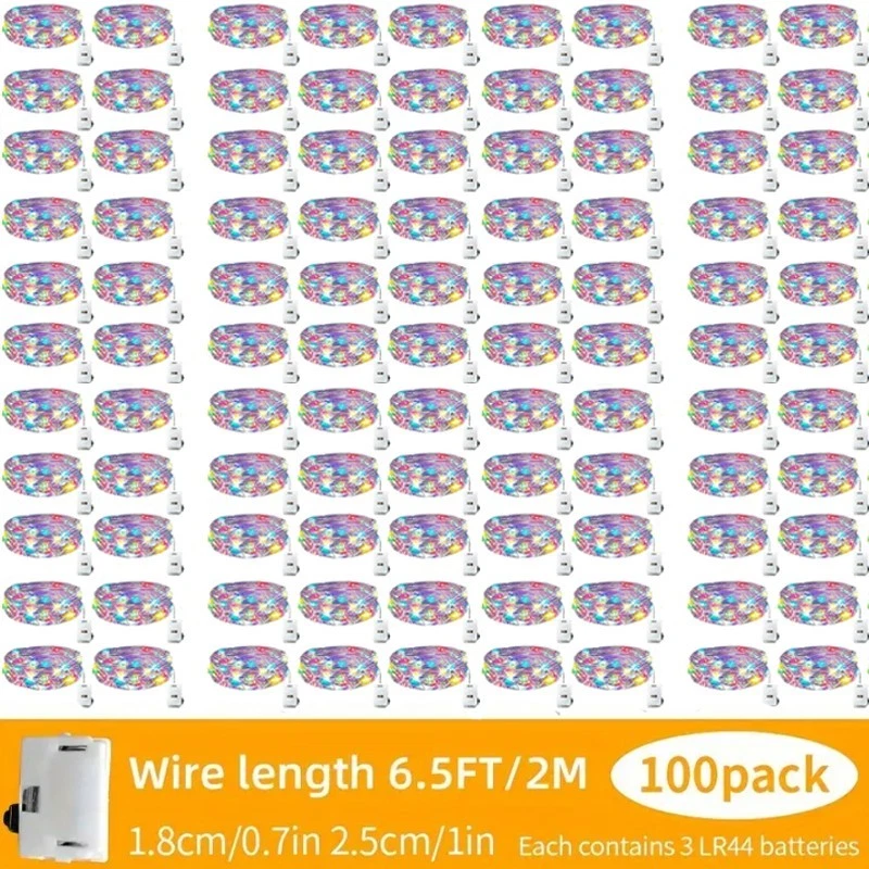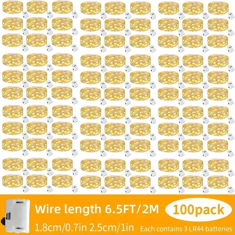 Number of Lights: 20LED 6.5Ft 100Pack Occasion: All Occasions Installation Area: Indoor & Outdoor LED String/Strip Type: Button copper wire string lamp Lighting Technology: LED Voltage: 5V Brand: Unbranded Features: Battery Powered, Waterproof Size: 2meters / 6.5feet MPN: Does Not Apply Power Source: Battery Type: Fairy Lights Battery Material: Copper wire
