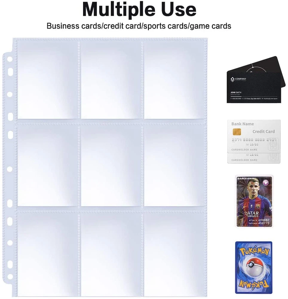 Clear 9-Pocket Trading Card Protector Sheets for Binders