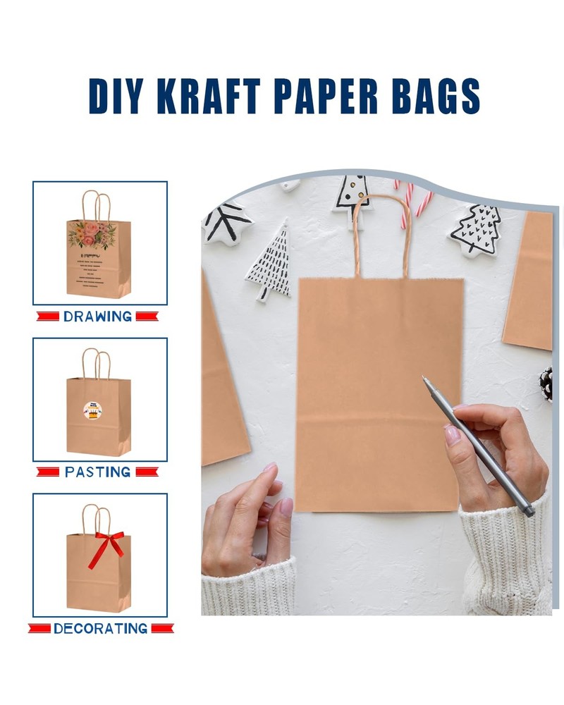 100-Pack Large Size Gift Paper Bags with Handles Bulk 13"x10.3"x4.6" Brown Party Kraft Shopping Bags Color & Size:100pcs Large paper bags /13"x10.3"x4.6" Brown Gift Paper Bag Reliable Material: Made of safe and recycled thick kraft paper, perfect for holding small gifts and ornaments. The high-quality thick paper is sturdy enough to carry heavier items Gift Bags: Fill these party favor bags with candies, goodies, and small gifts to create the perfect goodie bags for weddings and birthday parties Great Value Pack: 100pcs Large paper bags offer excellent quality and affordability. We update new designs every month to bring you more options :We don't have to Exaggerate to Attract our Customers, Because We Know Providing Best Quality Products is The Only Way to Set up Our Brand Status Among Long-Term Market.