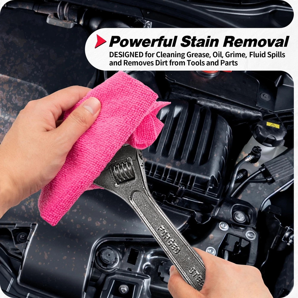 Microiber Cleaning Cloth, the ultimate cleaning companion for your home! Made with super soft and lint-free fibers, this cloth ensures a scratch-free cleaning experience for your clothes, paint, and other surfaces. Its high water absorption capacity allows you to quickly and effortlessly clean even the tiniest dust particles that are invisible to the naked eye. Whether it's household appliances, kitchenware, automobiles, bathtubs, windows, glass, or mirrors, this cloth delivers exceptional cleaning results, leaving your home sparkling clean. With its durability and long-lasting performance, you can rely on this cloth for daily use, saving you money in the long run. Experience the difference with and enjoy the convenience of reusable, lightweight, and highly absorbent cleaning tool. Get yours today and discover the joy of effortless cleaning! Highly Absorbent& Lint Free: Our premium car microfiber towels effortlessly absorb and retain moisture, leaving no streaks or spots behind. These highly absorbent car cleaning cloths soak up liquids, ensuring your beloved vehicle shines flawlessly. Edgeless&Scratch-free: These top-notch drying towels for car cleaning won't scratch delicate surfaces, unlike similar products with hard sewn edges. With their dual-sided scratch-free design and seamless edges, these car towels are perfect for polishing, cleaning, wiping, detailing, drying, or dusting any vehicle. They are also ideal for polishing electronic surfaces and glass. Perfect Size&Super value: Measuring 12"x12", polishing microfiber car towels are perfectly sized to fit in your car's glove compartment or console, making them always convenient to use. This is the ideal size for car drying towels, allowing them to reach every nook and cranny of your cherished vehicle. With a budget-friendly 100-pack offering, they provide excellent support for all your car cleaning needs. Multiple Colors & Versatility: The five different colors allow you to differentiate specific cleaning tasks for your car, such as tires, interior, windows, body, and engine. Similarly, assigning different-colored towels for various cleaning scenarios like kitchen, bedroom, bathroom cleaning, office dusting, window wiping, etc., ensures an organized cleaning routine. Keep your cleaning tasks well-organized! Unmatched Cleaning Power & Easy Care: The Micro fibers provide an incredible ability to tackle tough stains, making them suitable for various industrial applications such as grease guns and wiping down machinery. After use, simply toss them in the washing machine, thanks to their durable construction that prevents wrinkling, stretching, or shrinking. These features not only make these cleaning towels more environmentally friendly and long-lasting but also a cost-effective choice.